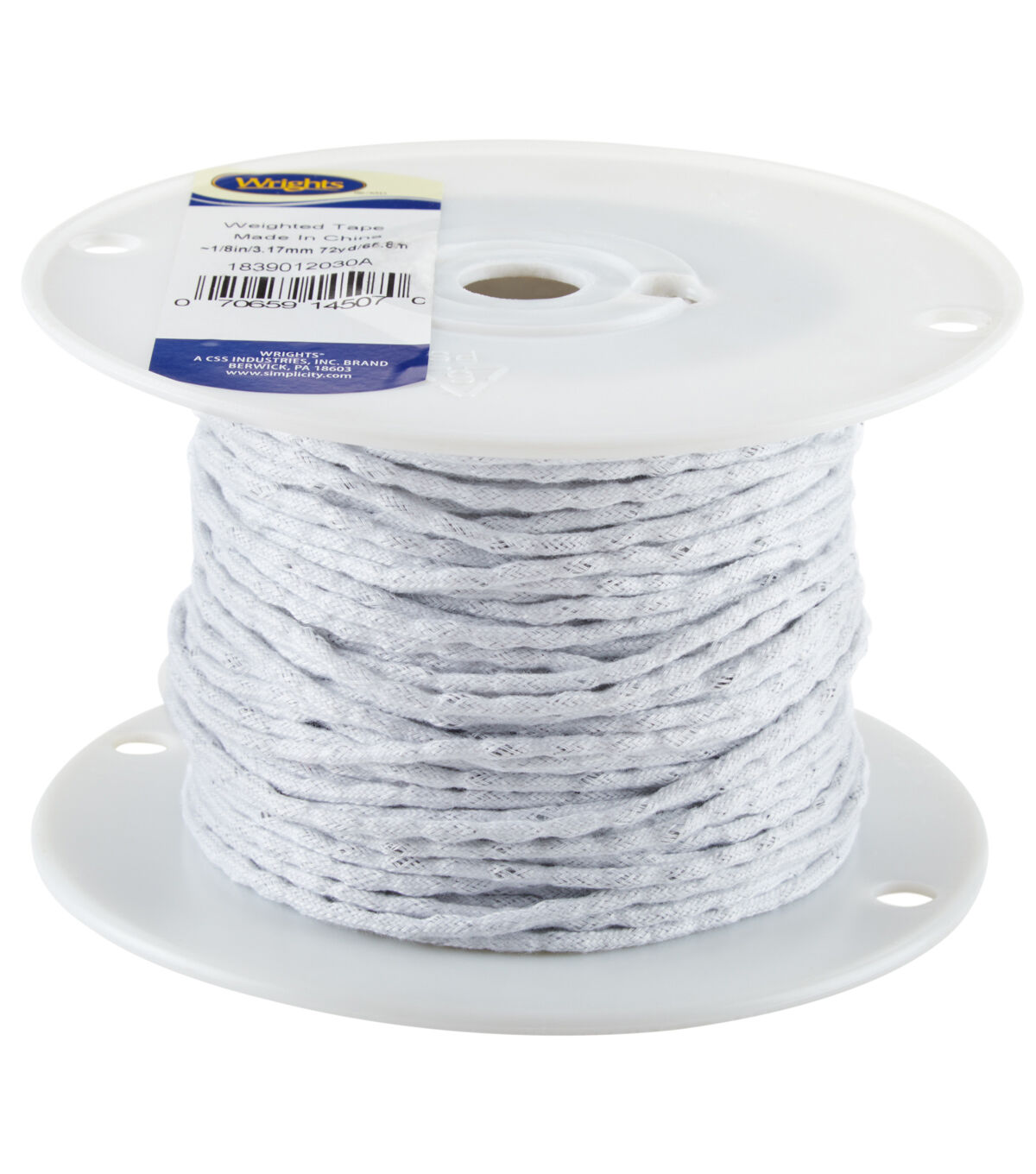 This tape provides the hem weight needed to keep drapes hanging evenly.