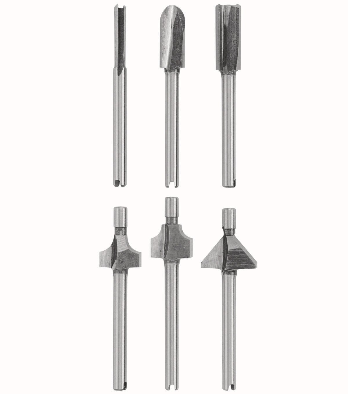 Perfect for the woodworker, carpenter, or hobbyist the Dremel 692 Router Bit Kit includes a set of six of our most popular high-speed router bits. The set includes Piloted Beading, Chamfer, Core Box, and Straight Router bits ideal for all your woodworking, edging, inlaying, trimming, grooving, veining, inlaying and mortising wood projects. Can be paired with the Dremel 231 Shaper Router Table or the Dremel 335 Plunge Router attachments.