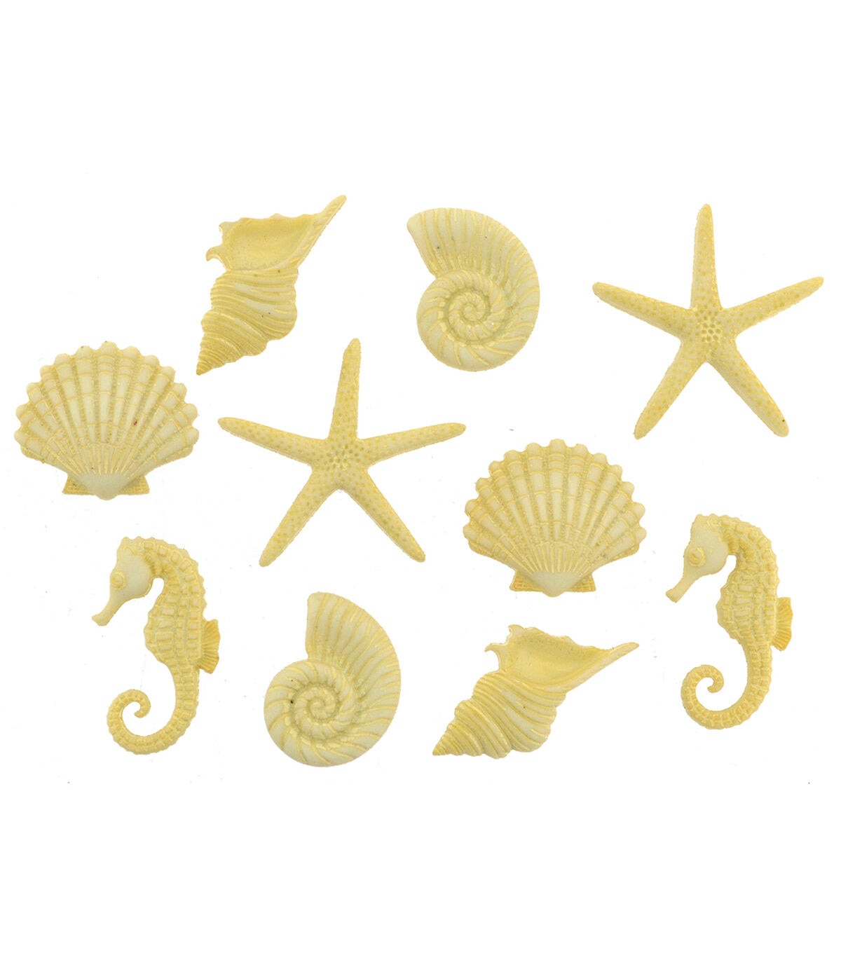 Need a day at the beach? Bring the relaxing feeling of laying on the sand home with these beach themed embellishments. Create adorable ocean themed craft projects, home decor pieces, decorate scrapbooks, and more. This assortment features two different styles of shells, seahorses, and starfish.