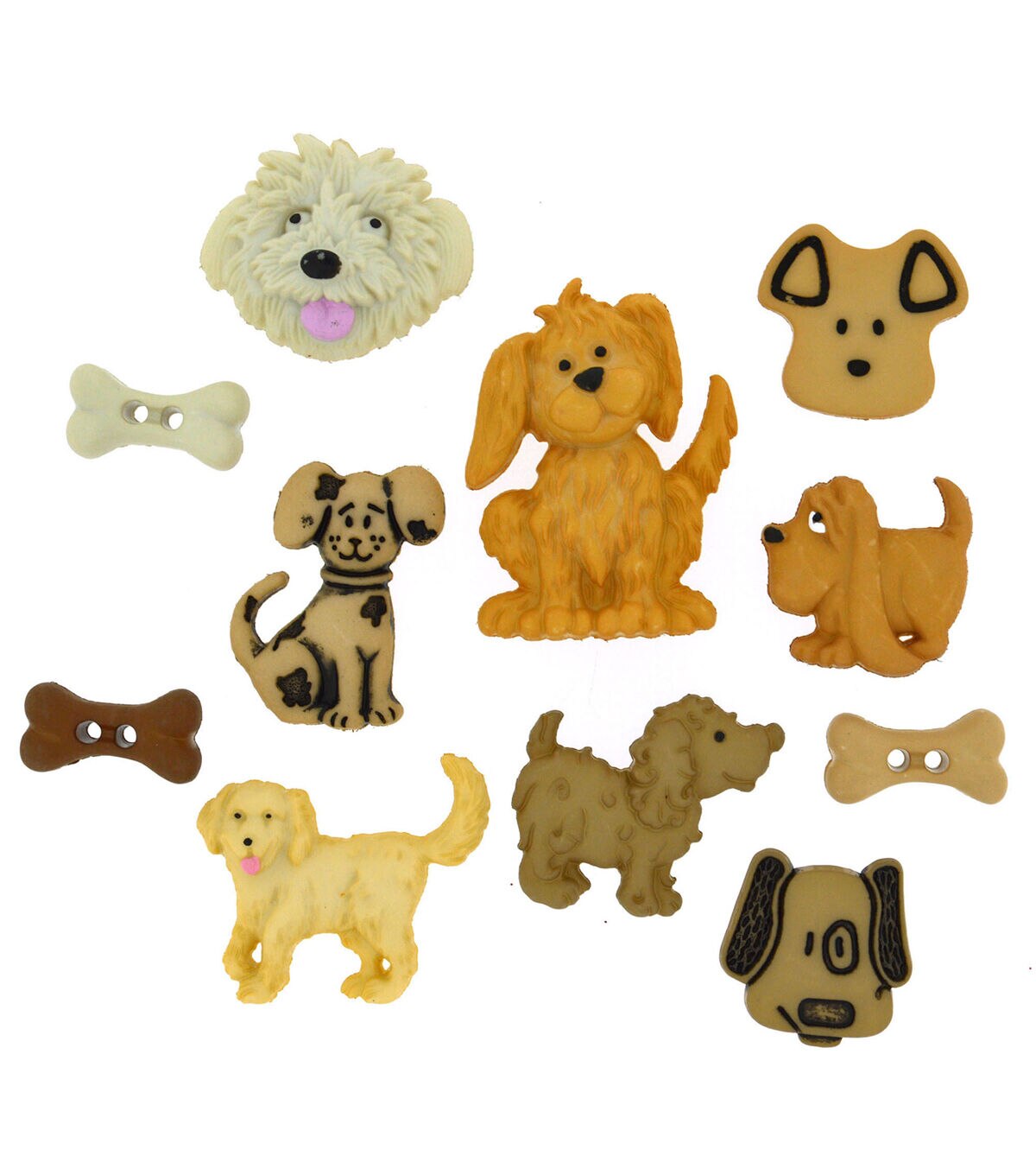 Embellish your sewing projects with the Jesse James Dress It Up Dog Button Embellishments-Dog Days and gift them to a dog lover friend. These button embellishments are shaped as adorable puppies and bones. They will add a cute and adorable touch to your pet apparel and accessories, tote fabric bags and more.