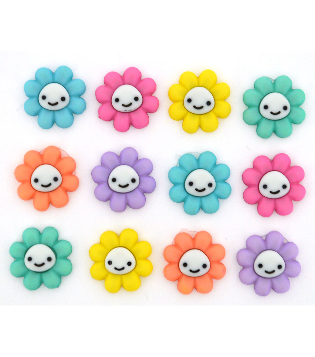 Create stunning 3D art using the Jesse James Dress It Up Button Embellishments-Happy Little Flower. Sporting vivid hues, these lovely flower-shaped buttons are perfect for embellishing handmade skirts, tops, totes and more. You can also use them for decorating a scrapbook, photo frame, gift tag and other crafting projects.