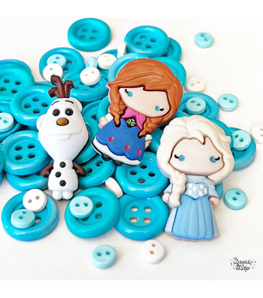 Bring alive the Frozen princess with the Jesse James Dress It Up Disney Elsa, Anna & Olaf Button Embellishments. These fun button embellishments are shaped as your favorite characters including Queen Elsa, Anna and Olaf. You can add them to your little one's dresses, tops, tees, backpacks and other accessories.