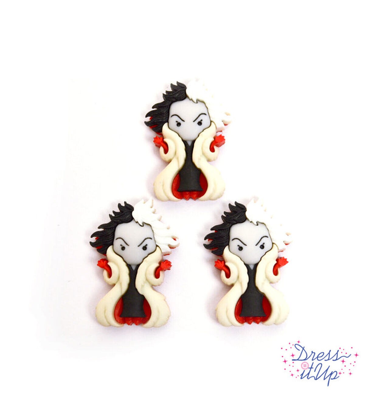 A villain with great tastes. This devious pack is perfect for adding to picture frames, children's room decor, projects, children's clothing & more. This singles pack features Cruella De Vil from Disney's 101 Dalmatians.