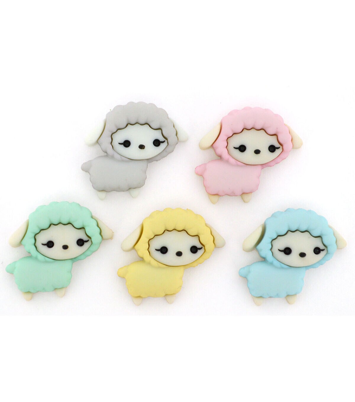 Embellish your little one's clothing with the Jesse James Dress It Up Button Embellishments-Baa Baa Baby Sheep to add an adorable touch. These button embellishments are shaped as tiny little sheep covered in different colored clothing. They will look great on tops, tees, sweaters, napkins and more.