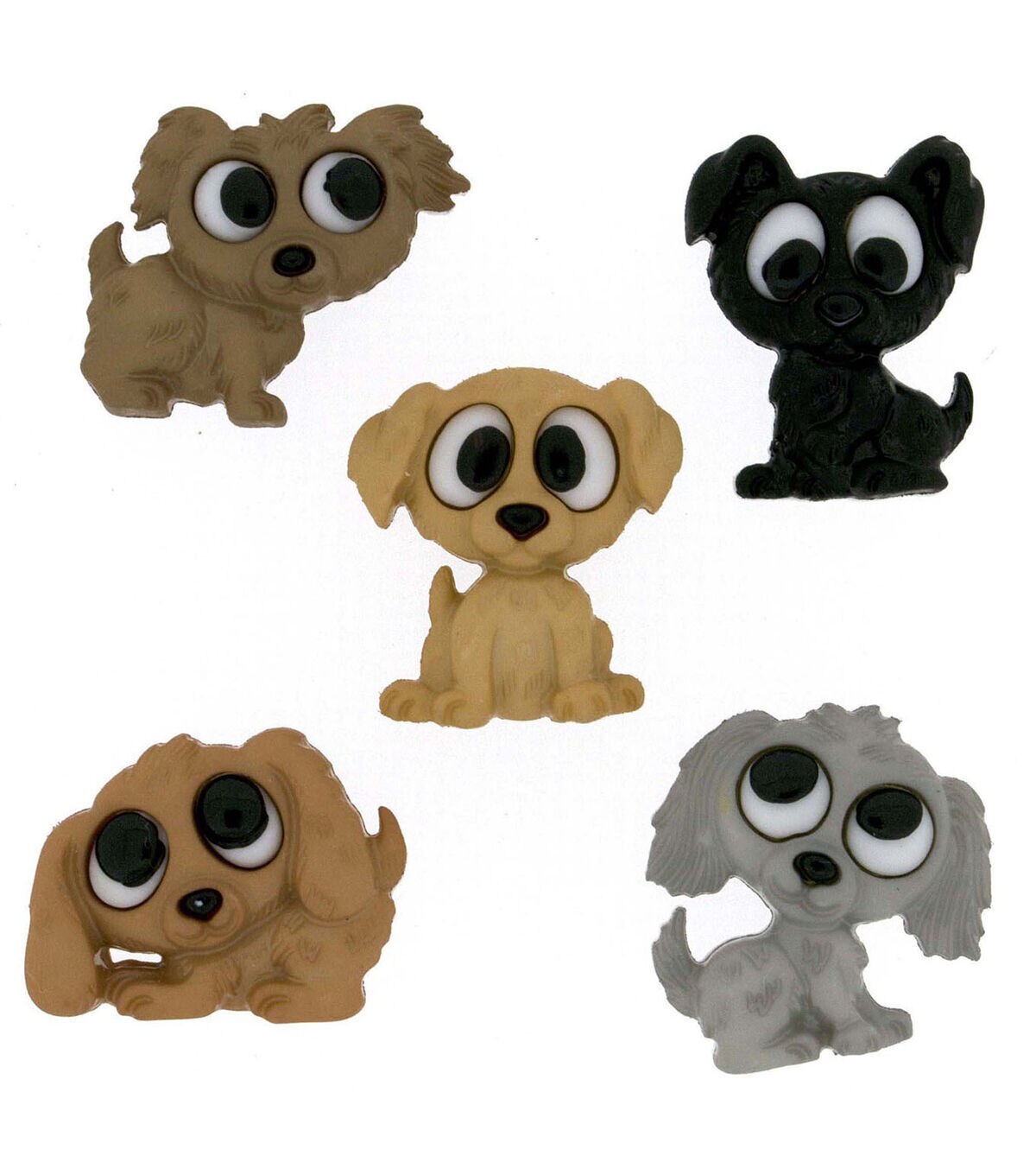 Show off your love for your pawsome friend by embellishing your sewing projects with the Dress It Up Button Embellishments Dog Collection Playful Puppies. These button embellishments resemble adorable puppies in different shades with big, expressive eyes. You can also stitch them onto fabric bags, dresses, tops and more, and gift them to a dog lover friend.