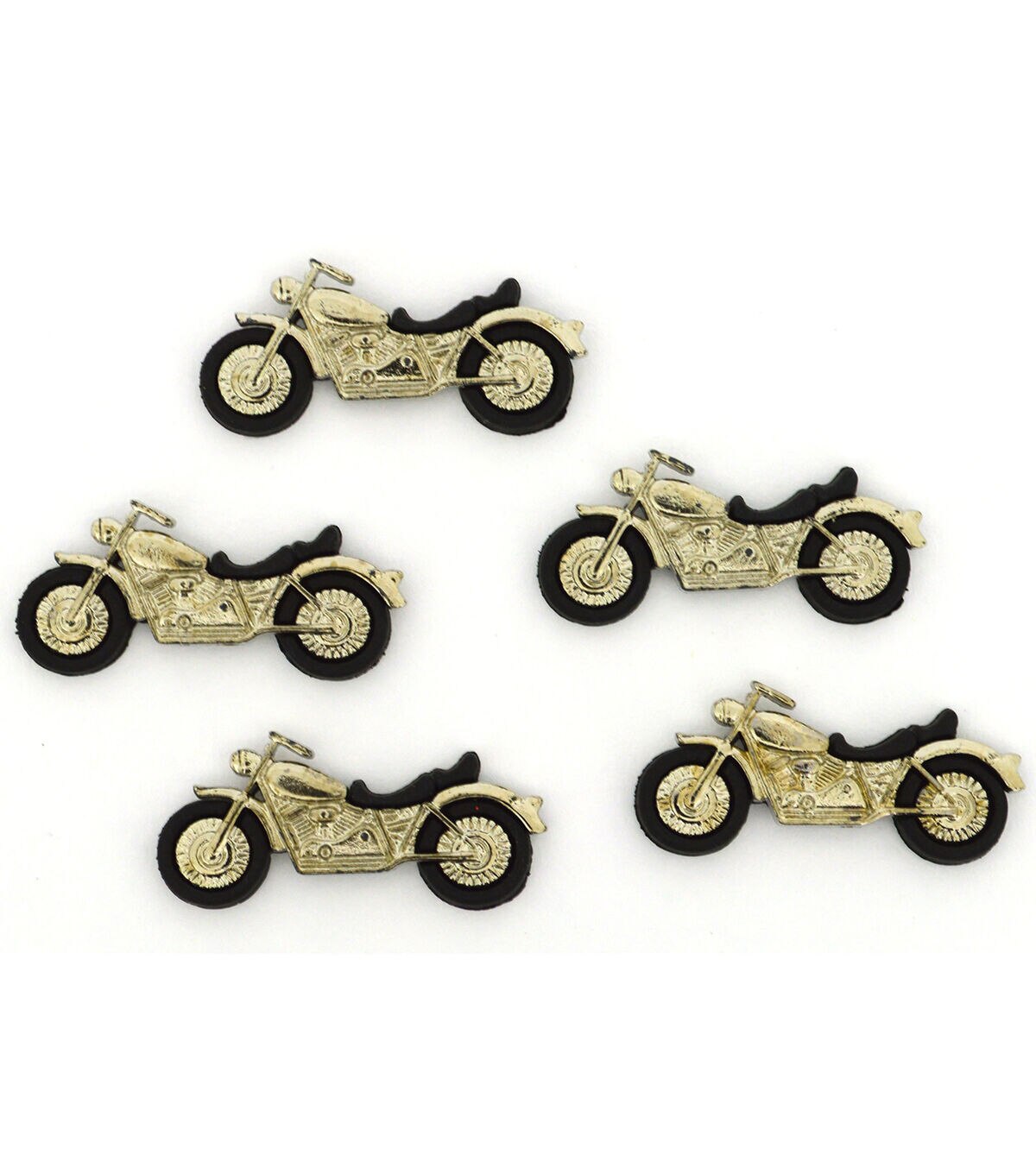 The Jesse James Dress It Up Little Boy Button Embellishments-Vroom will be perfect for decorating your little one's apparel. Resembling heavy bikes with an elegant gold finish, they are perfect for a bike-loving friend. You can use these shank button embellishments to add charm to her dresses, tops, tote bags, backpacks and more.