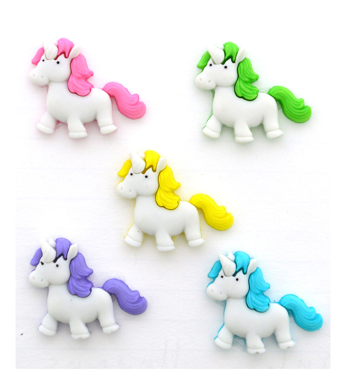 - Durable plastic resin button embellishments