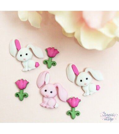 These adorable little bunny rabbits come in Pink and White. They are running through a beautiful field of pink tulip flowers. Great for crafting for Easter, Spring, birthday cards and kids love to put them on their favorite craft projects.