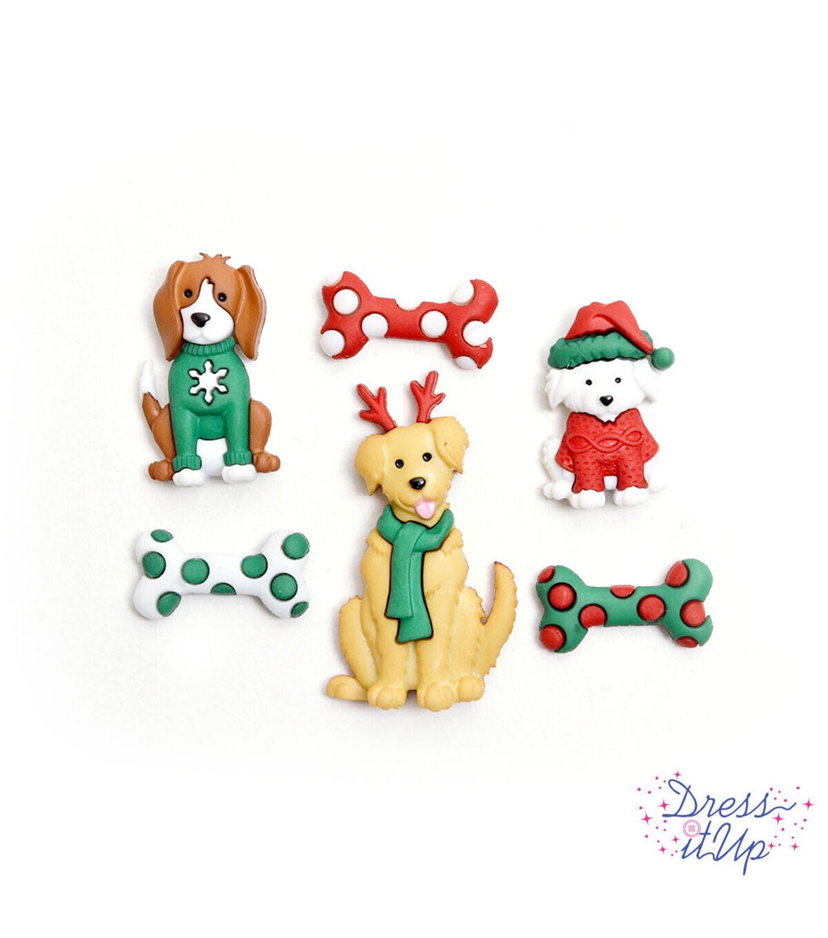 Happy holidays from these festive Fidos! This pack features three cheery dogs and bones. Add to holiday cards, gifts, decor, dog bowls, clothing & more.