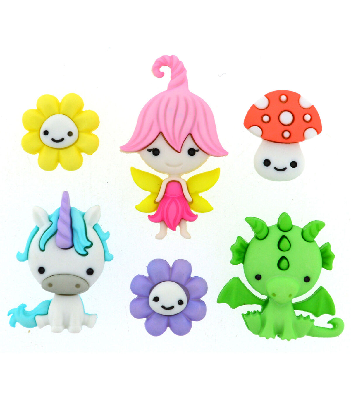 A magical playdate with Fairies and their friends. This craft embellishment pack includes one fairy, one unicorn, one dragon, two smiling flowers, and one smiling mushroom. Ready for any adventure, these embellishments are perfect for adding to children’s crafts, DIY castles, needlework, sewing crafts, embroidery, wood crafts, and more!