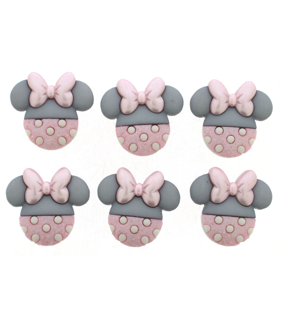 Baby Minnie! These adorable Minnie head buttons are the perfect craft embellishment for any baby girl crafts or decor. Embellish an adorable picture frame or create the perfect favor for a baby shower. These button embellishments are designed to add a touch of Disney magic to any fiber craft, paper craft, woodcraft, or other craft project.