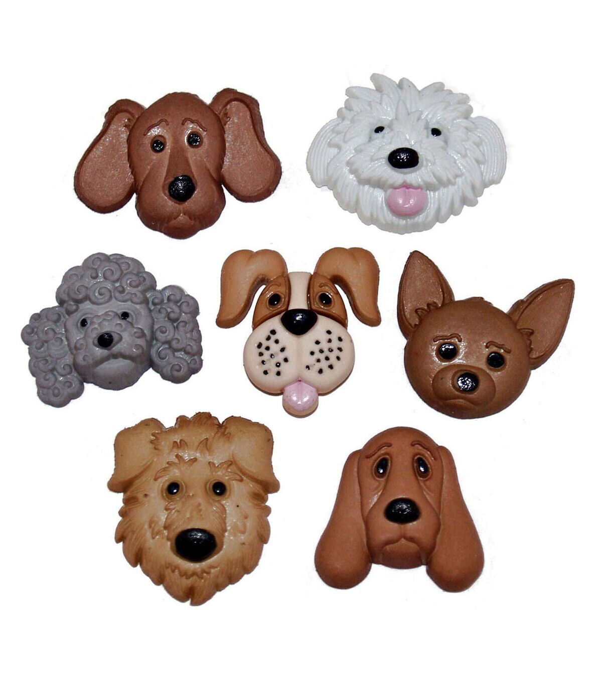 Elevate the cute quotient of your baby's dress or tee with the Dress It Up Button Embellishments Dog Collection Fuzzy Faces. These button embellishments are shaped like dog faces of different furry breeds and look adorable. You can also use them to embellish a DIY tote bag or your beloved pooch's collar.Brand: Dress It Up Collection: Novelty Buttons Theme: Fuzzy Faces Includes seven buttons Content: Plastic This product comes in an assorted variety of themes - item will be picked at random
