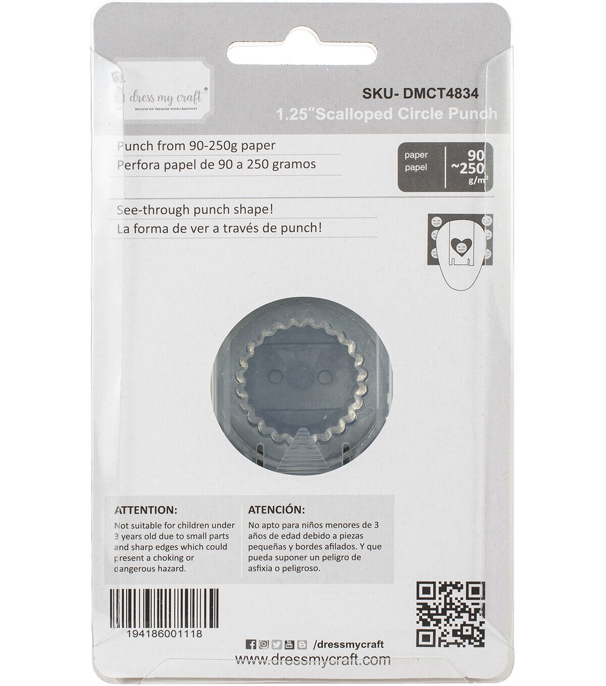 This punch features a clever design that made punching heavy cardstock easier than ever. The bottom of the punch has a sliding cover at the cutting edge to catch your cutting. It can cut 90-250 gsm without any extra force. Great for cutting papers, cardstock, stationery, invitations, thin foam sheets, thin glitter sheets, and other craft projects. This package contains one 1.25 inch scalloped circle punch. Imported.