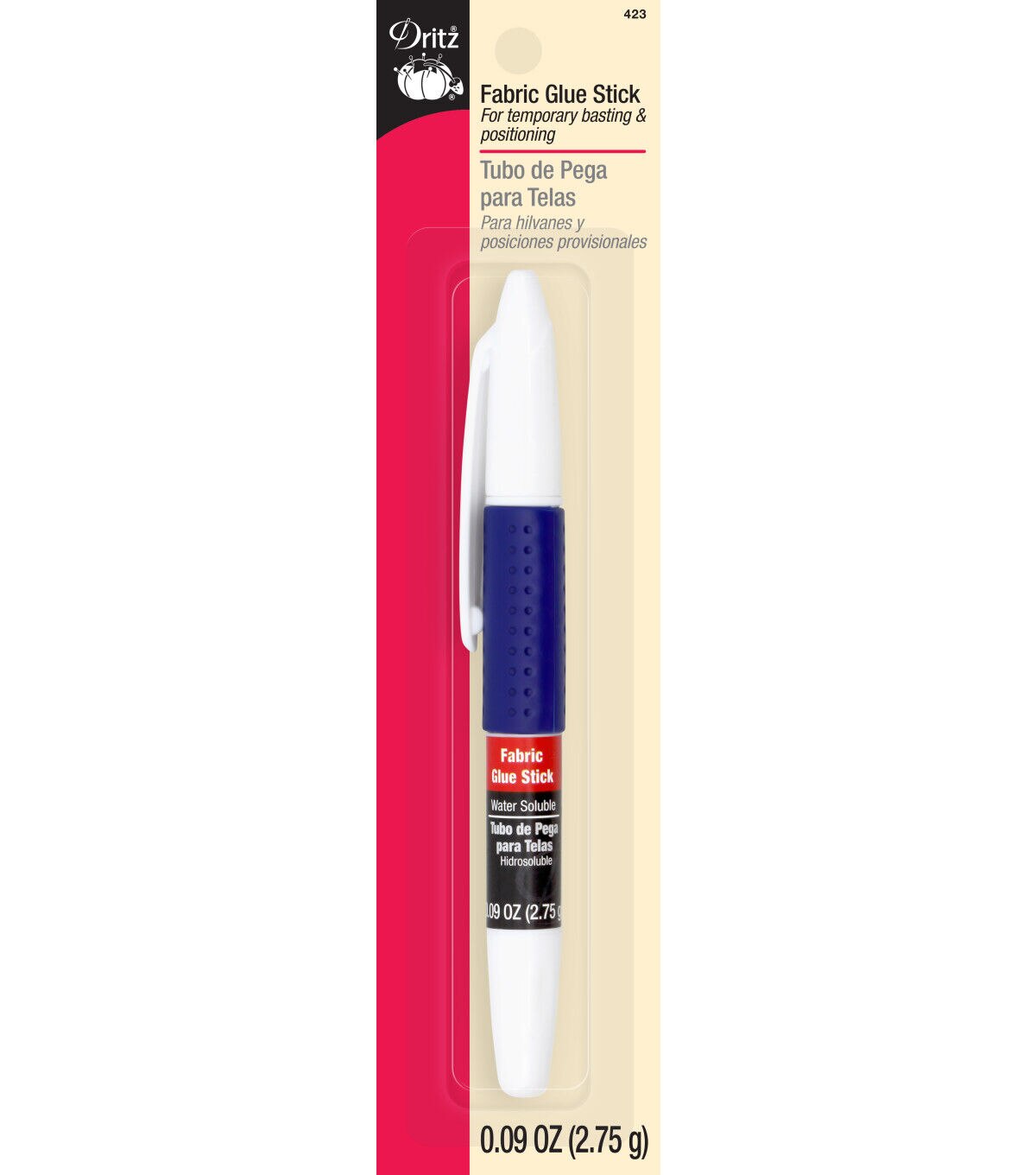 Find a quick solution to your temporary basting and positioning needs with the Dritz Fabric Glue Stick Pen. This glue stick pen contains water-soluble glue, which washes out of most fabrics easily. The narrow glue stick helps you apply it precisely while basting seams or positioning ribbons, trims and appliques.