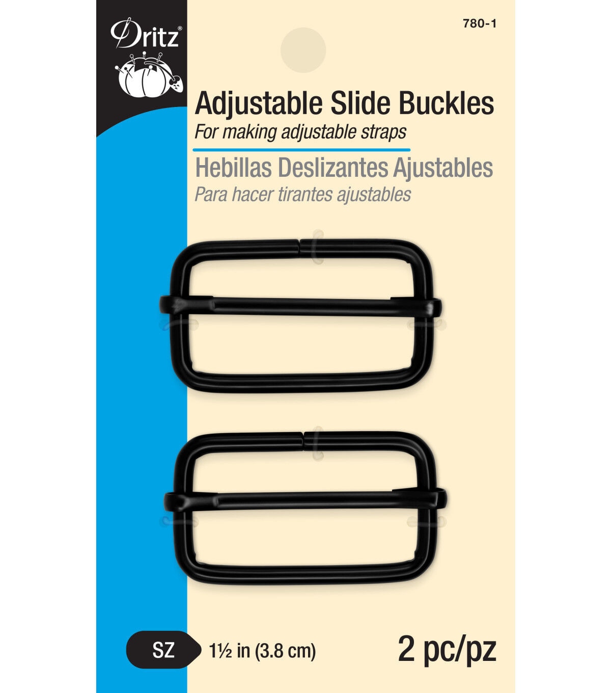 Use the Dritz Adjustable Slide Buckles - Black to make adjustable straps for belts, purses, bags, backpacks and luggage. This pack contains two adjustable slide buckles sporting a black shade and they are also used to convert shoulder bags to cross-body bags. The moveable center bar grips fabric and slides to one side to lock fabric into place. You can use these buckles with other coordinating Dritz hardware such as D-rings, rectangle rings, triangle rings and swivel hooks.