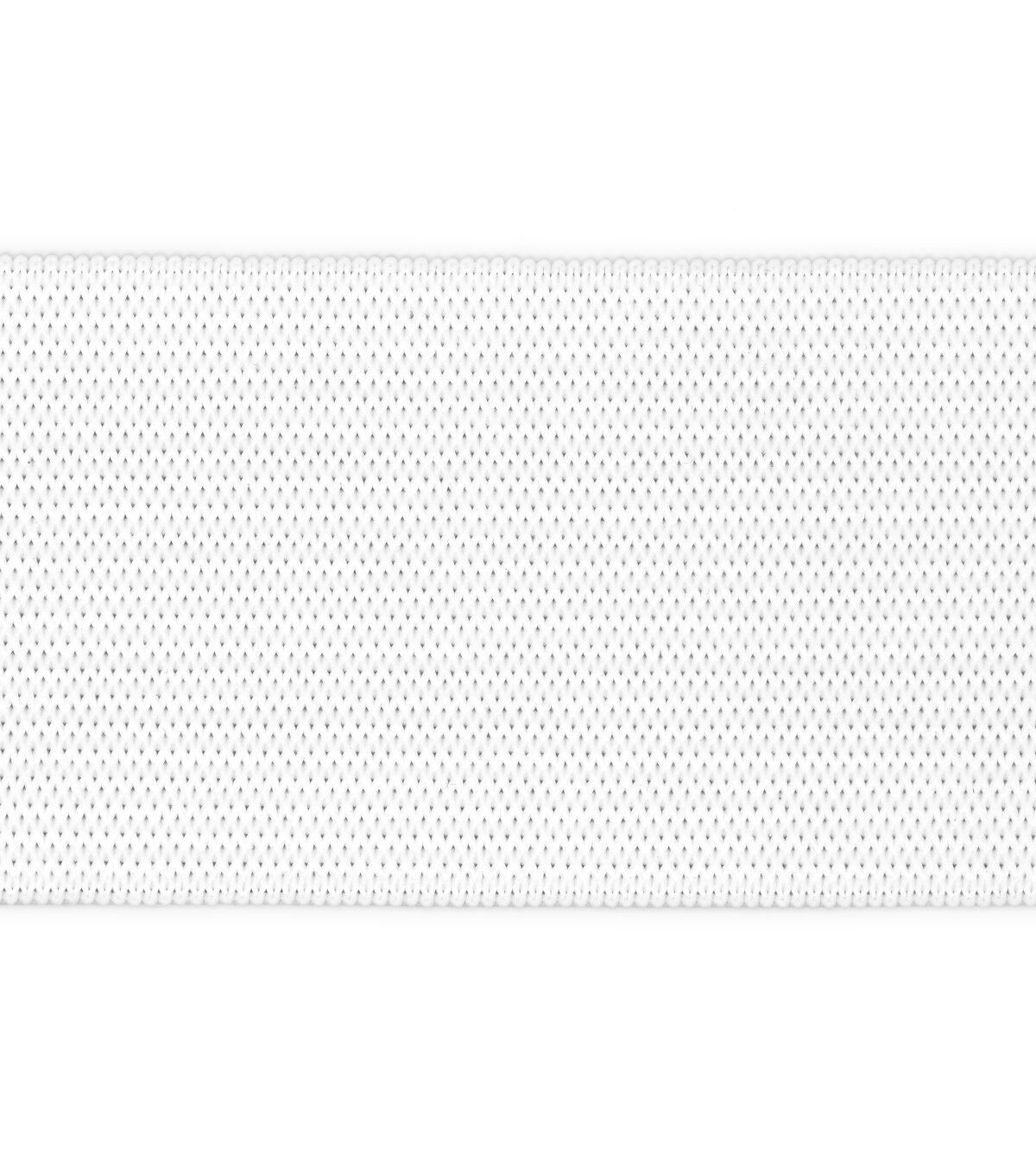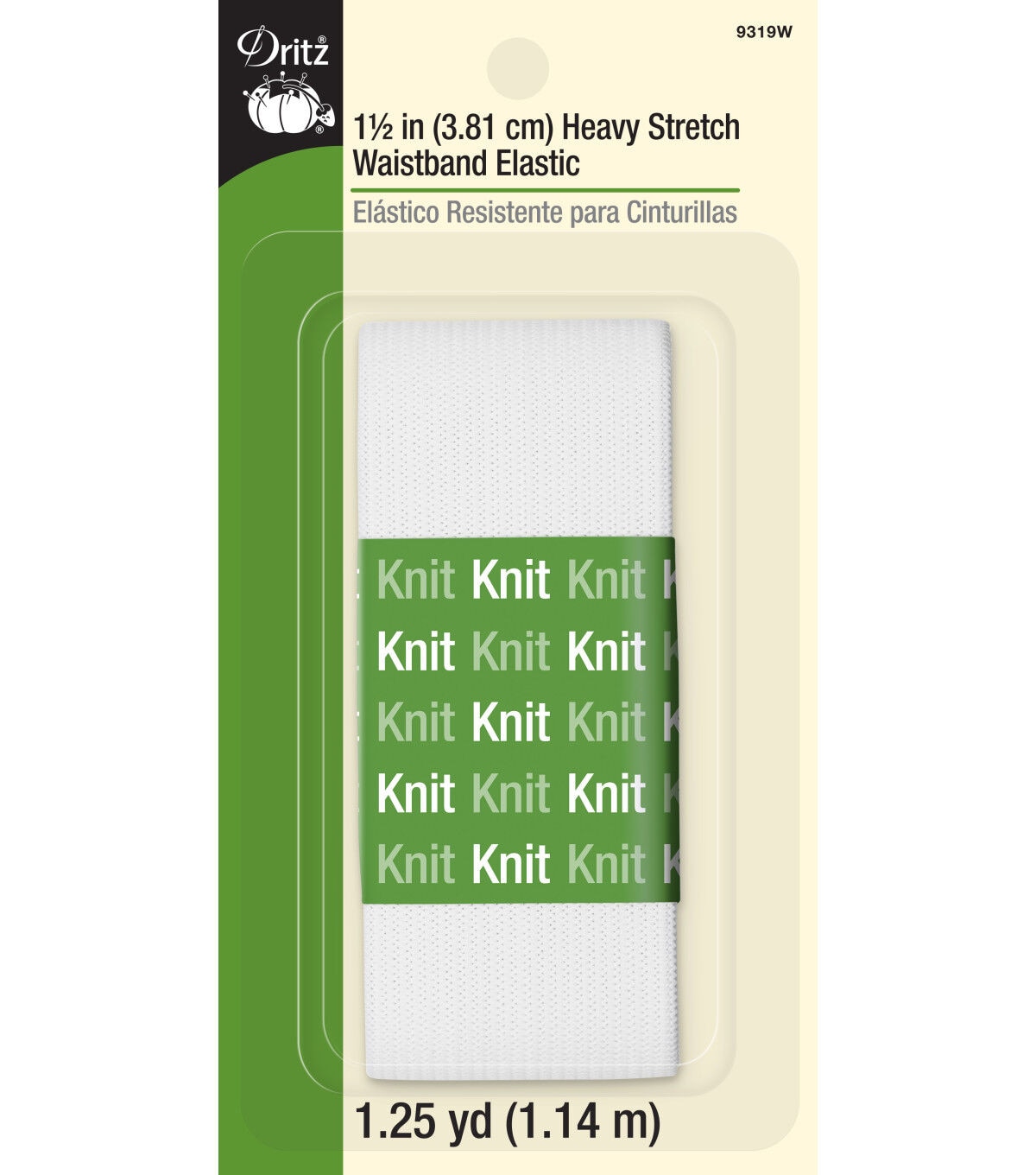 The Dritz Heavy Stretch Waistband Knit Elastic - White is ideal for use as cuff bands, waistbands and jacket waistbands. It resists curling and works well with heavy fabrics. This pack contains 1.25 yards of 1.5-inch wide elastic sporting a white shade.