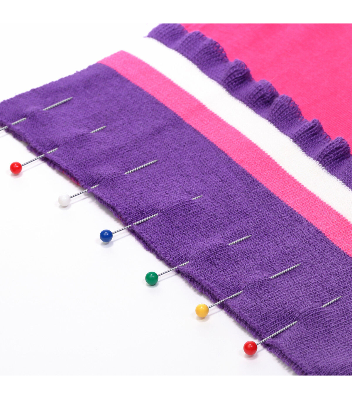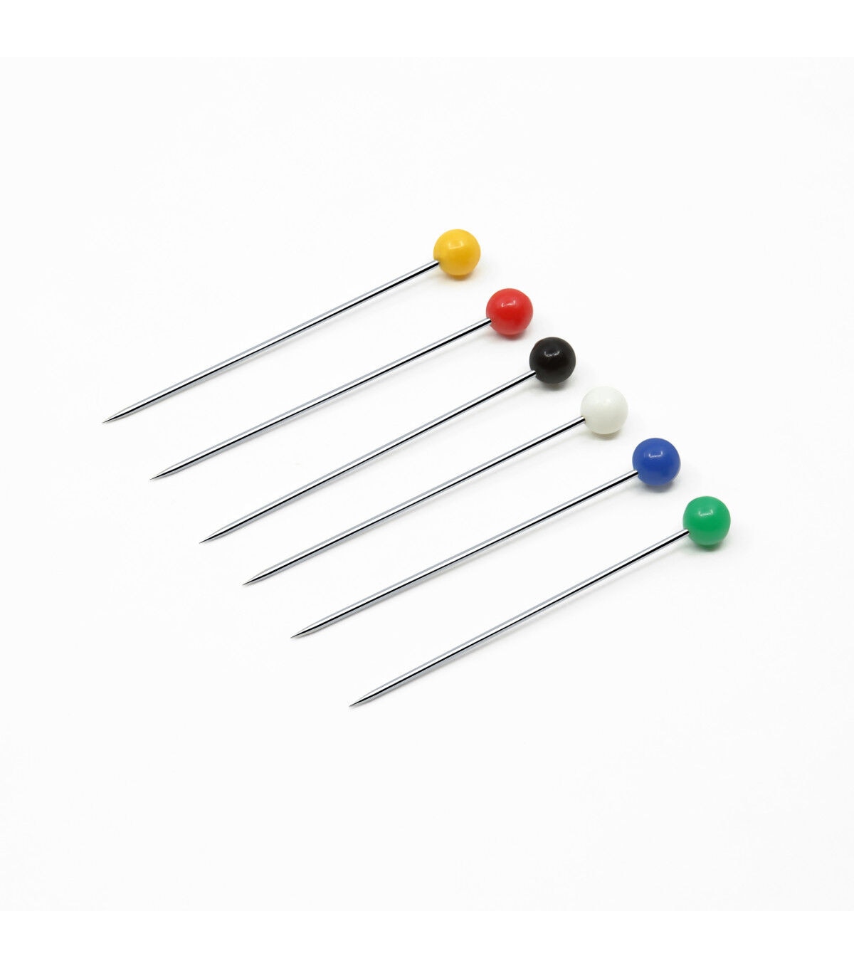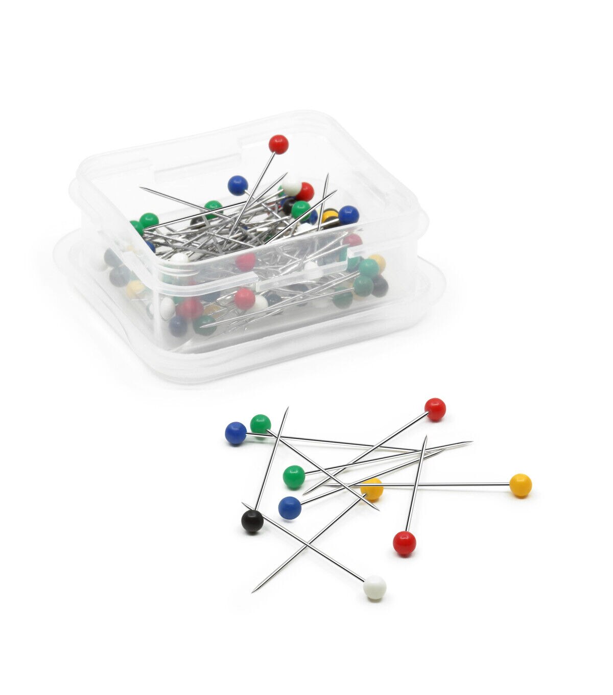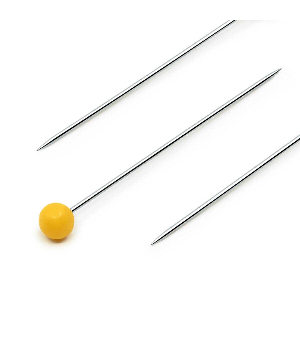 Easily fasten a variety of fabrics with the Dritz Long Ball Point Pins. These pins are made of nickel-plated steel and are designed with extra-fine pointed tips and a smooth sliding surface. They are strong enough to smoothly pass through most fabrics without bending. This pack includes 75 stackable pins in size 24 and they come in a reusable, see-through box.