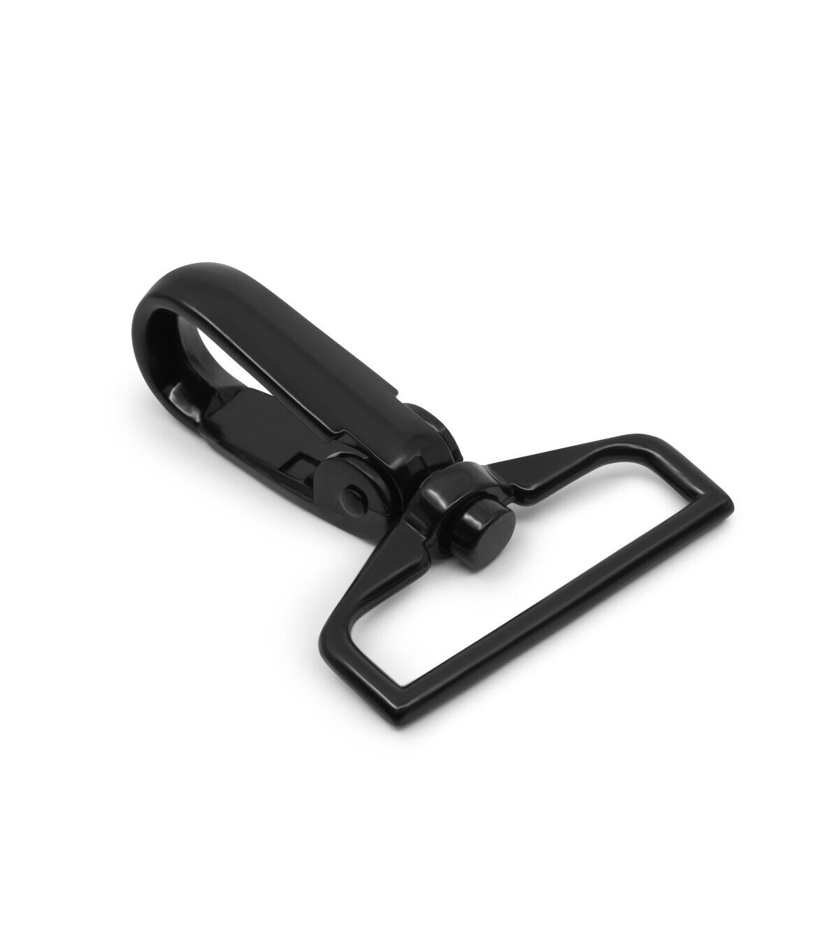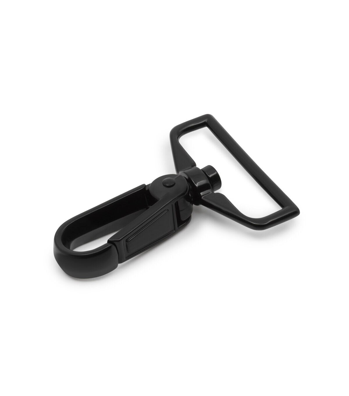 Use the Dritz Swivel Hook - Black to make lanyards, fobs, belts, bag straps and more. This swivel hook sports a black shade and has a loop end and a hook end. The hook end opens and closes allowing it to be attached to other pieces of hardware or fabric tabs. You can use it with a D-ring, rectangle ring or triangle ring, which provides a mechanism from the swivel hook to hang and attach other things.