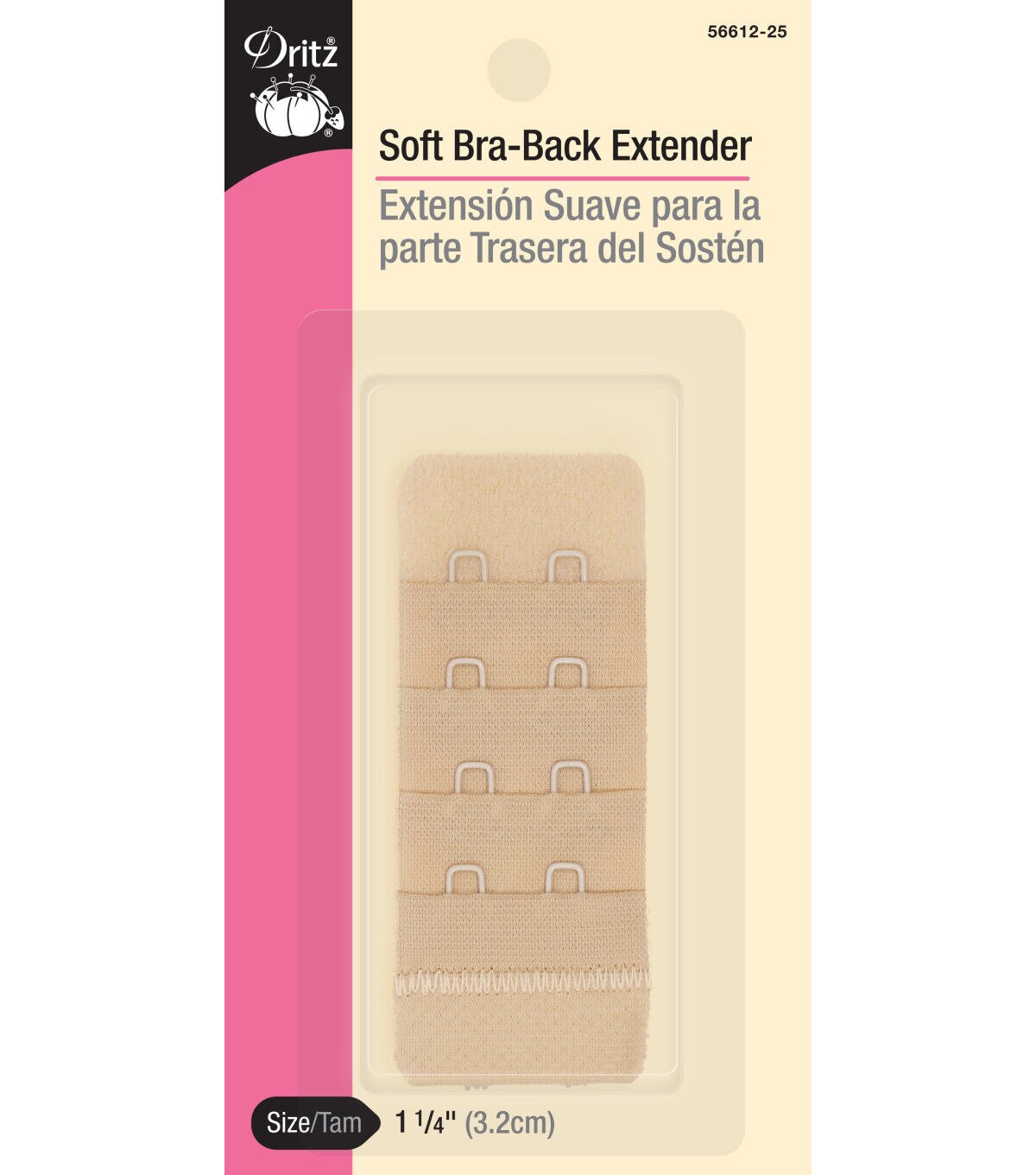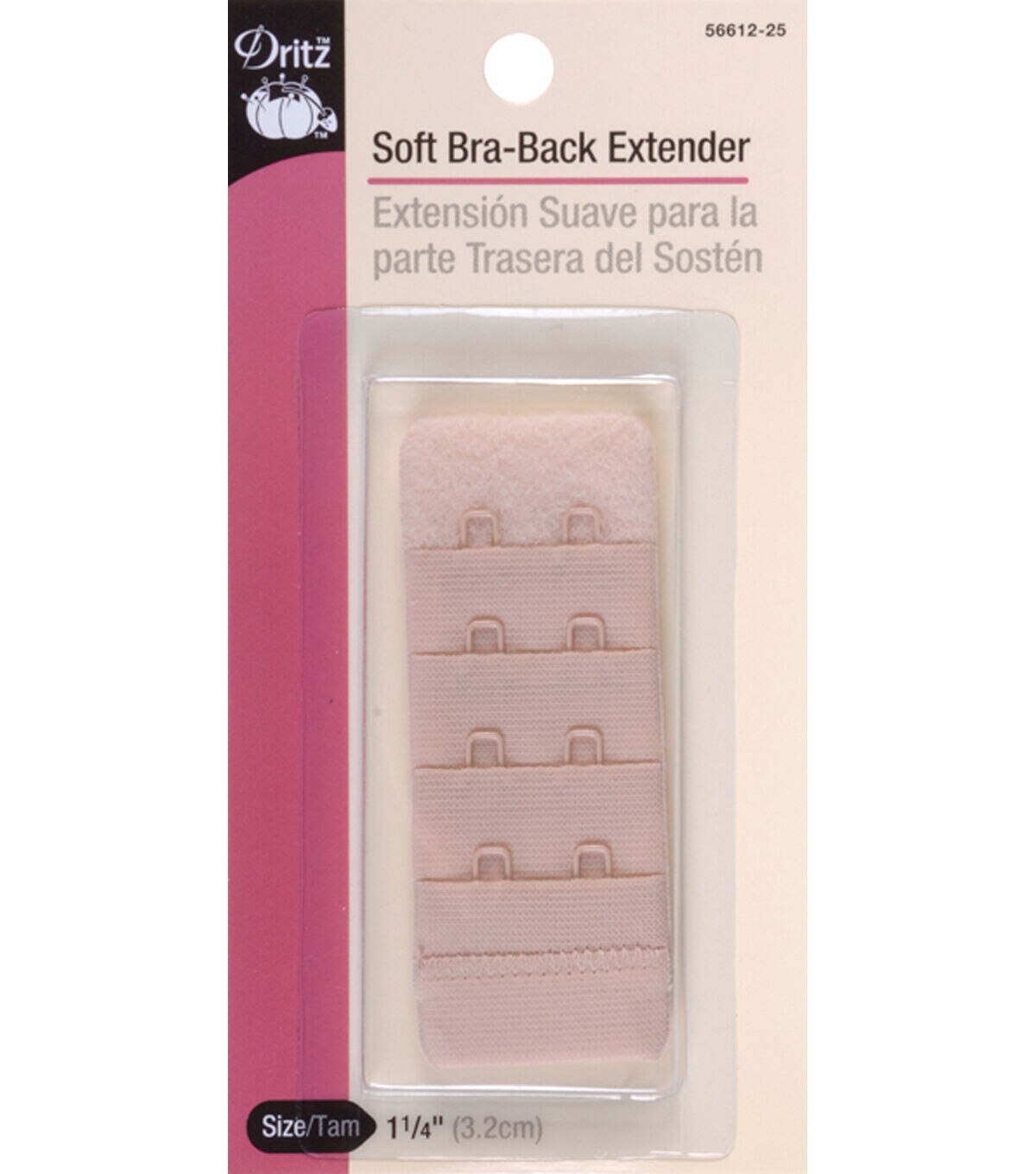 Add extra inches to the underband of your bra with the Dritz 2 Hook Soft Bra-Back Extender 1.25''. This pack contains one 1.25-inch wide bra extender that can be inserted in between your bra hook and eye to add between 1 to 3 inches of extra length. The soft texture of this bra extender provides comfort and gives you a snug fit. Check out the optional color that's available, sold separately.