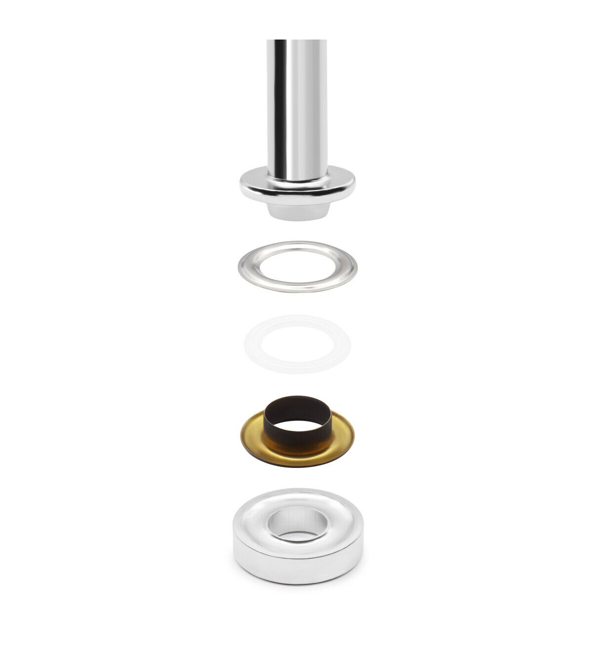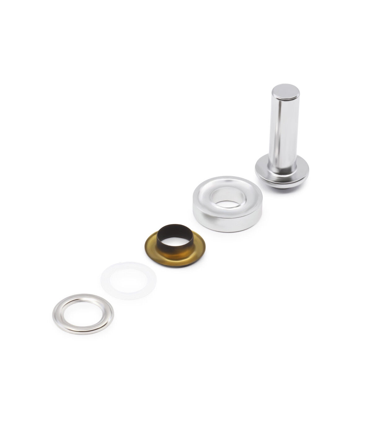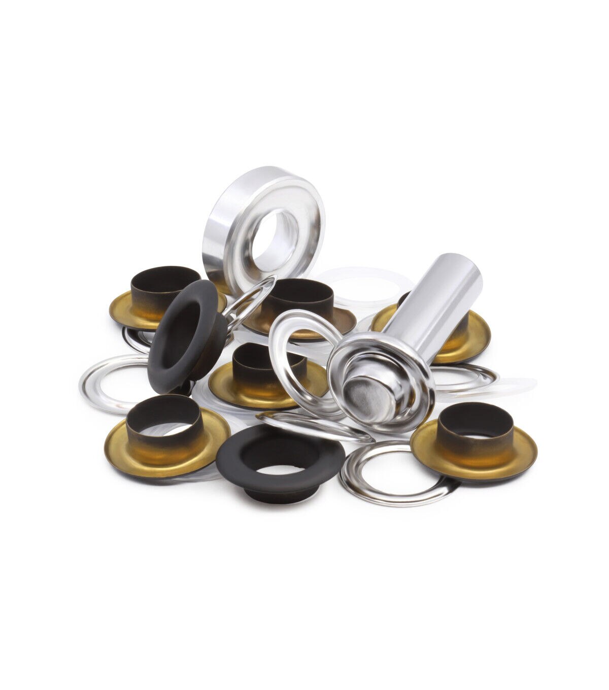 Provide a professional finish and decorative detail to garments, bags, purses and more using the smooth feel and texture of the Dritz Fashion Grommet Kit - Black, Clear, Silver & Gold. The kit includes grommets and hand tools for application. These grommets are designed with a plastic insert that is placed on the post. It should be added to the wrong side of the fabric for extra stability and support. This kit includes washers that must be placed over the insert and applied with the hand tools and a hammer. You can use the smooth, finished grommets on fabric surfaces.