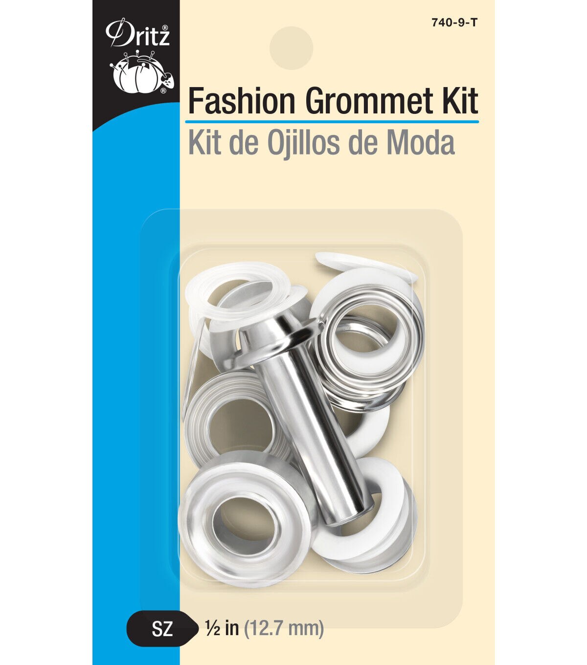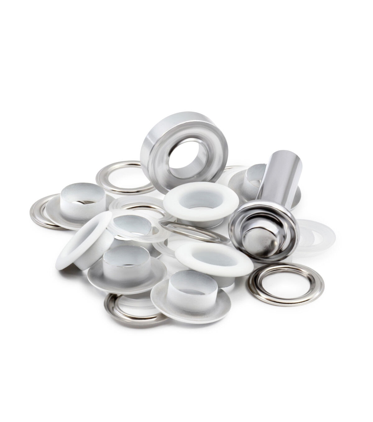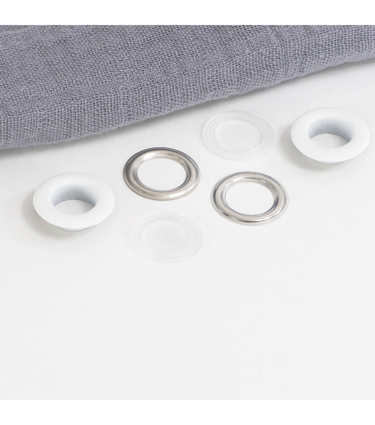 Provide a professional finish and a decorative detail to garments, bags, purses, and using the smooth feel and texture of the Dritz Fashion Grommet Kit - White & Silver. The kit includes grommets and hand tools for application. These grommets are designed with a plastic insert that is placed on the post. It should be added to the wrong side of the fabric for extra stability and support. This kit includes washers that must be placed over the insert and applied with the hand tools and a hammer. You can use the smooth, finished grommets on fabric surfaces.