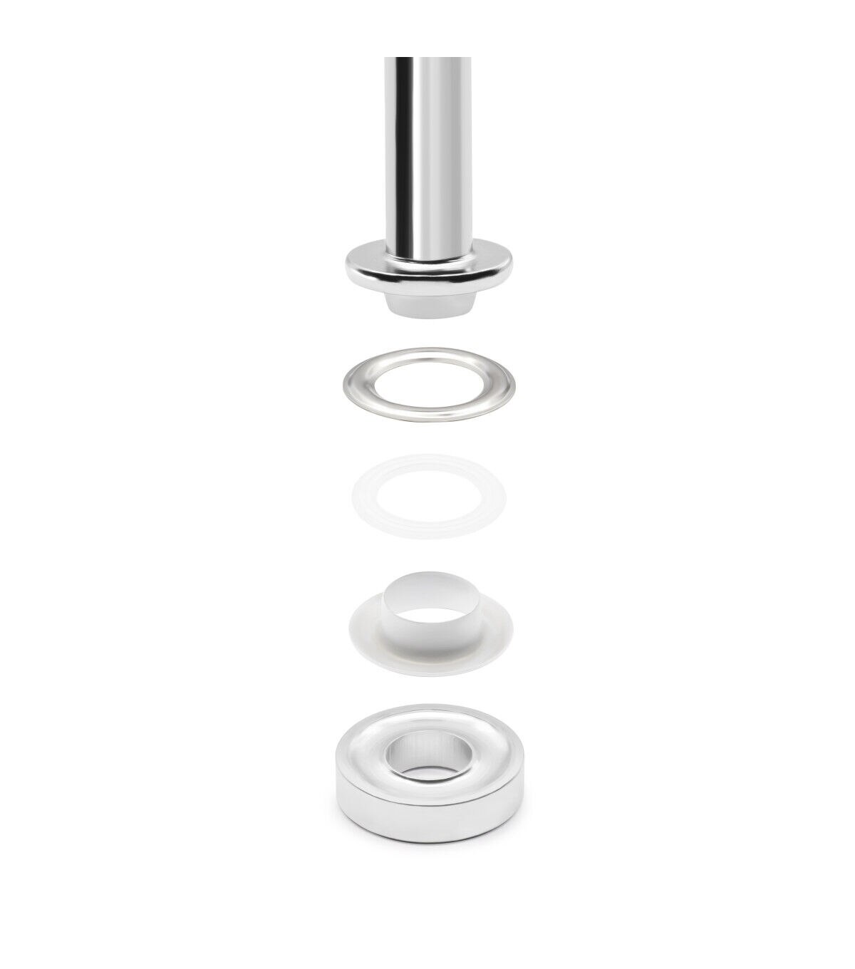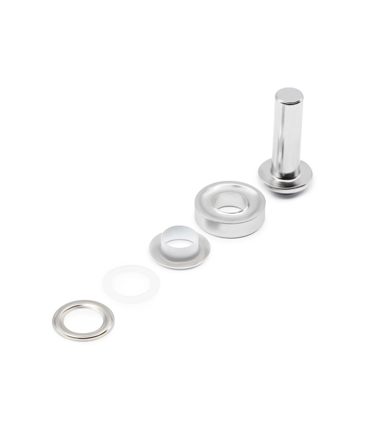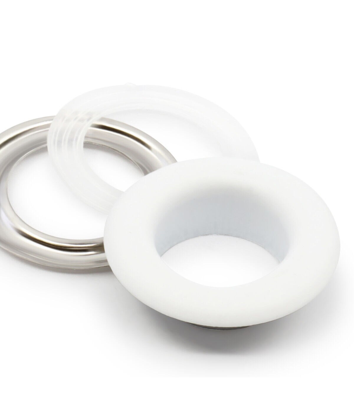 Provide a professional finish and a decorative detail to garments, bags, purses, and using the smooth feel and texture of the Dritz Fashion Grommet Kit - White & Silver. The kit includes grommets and hand tools for application. These grommets are designed with a plastic insert that is placed on the post. It should be added to the wrong side of the fabric for extra stability and support. This kit includes washers that must be placed over the insert and applied with the hand tools and a hammer. You can use the smooth, finished grommets on fabric surfaces.