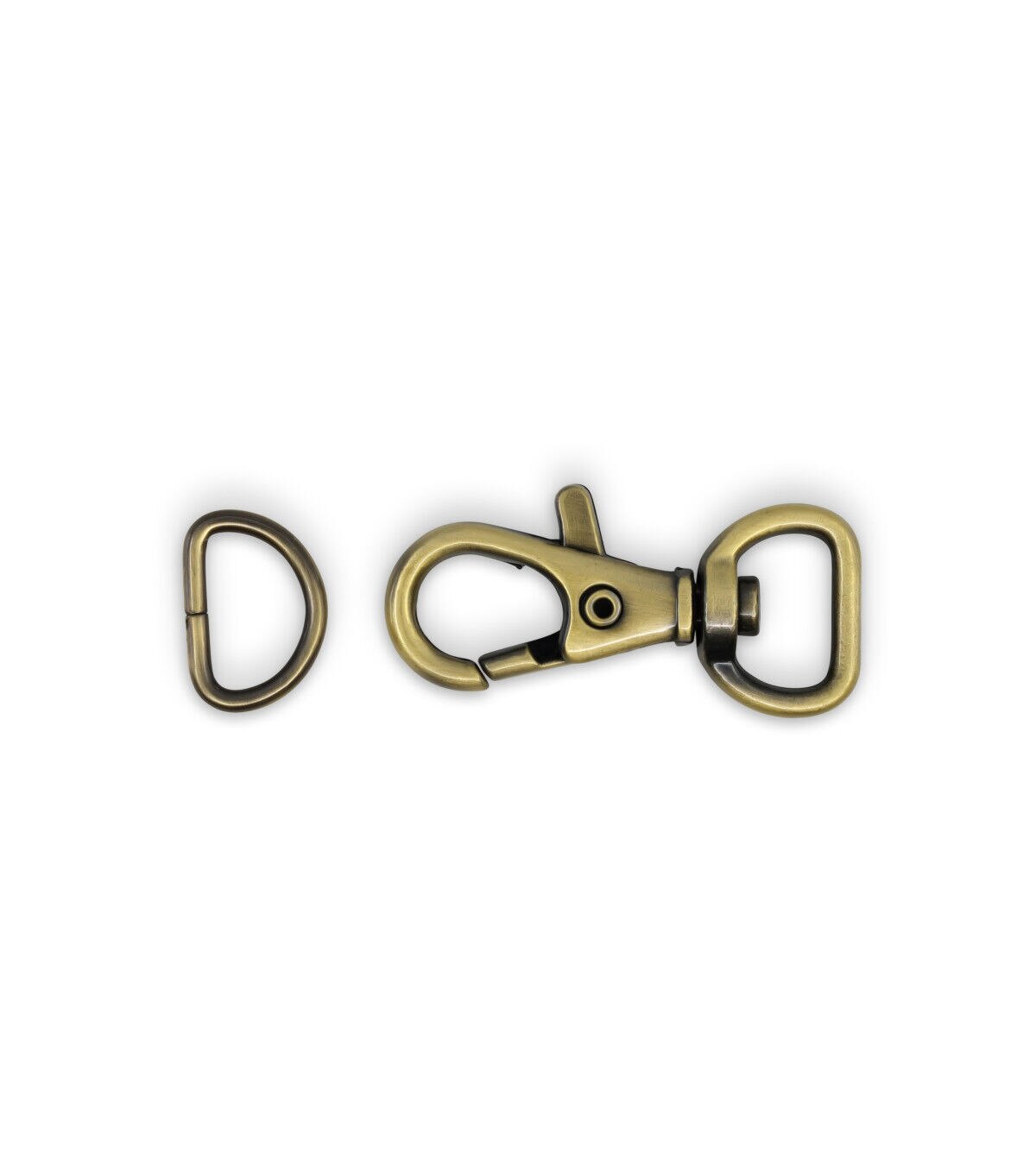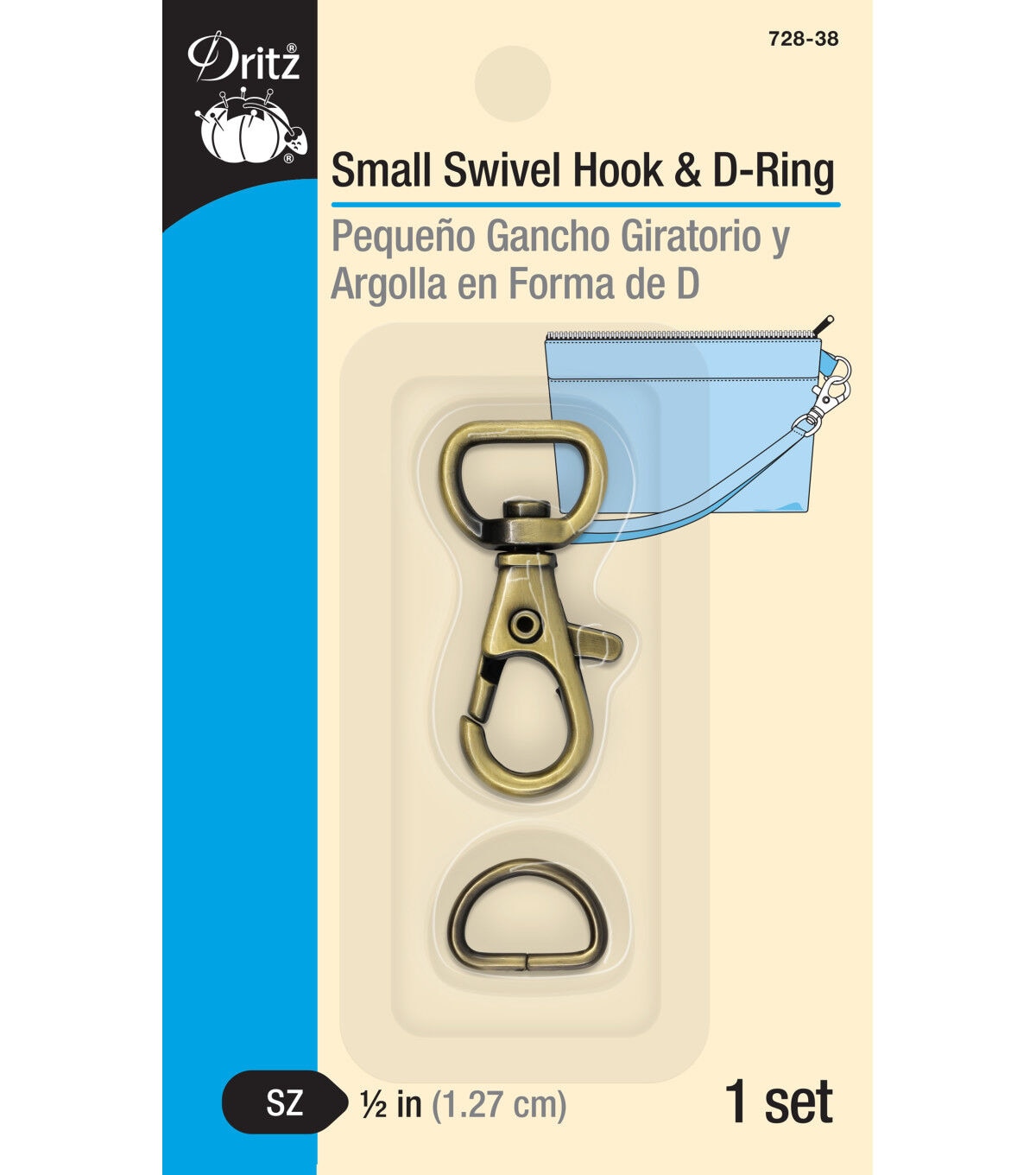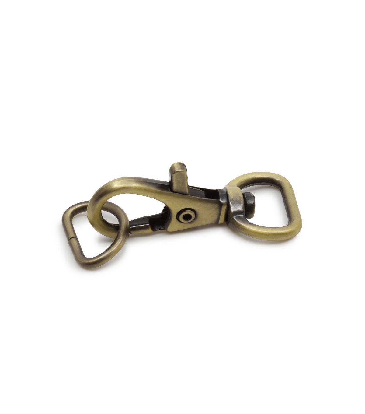 Complete your sewing supplies with the Dritz Small Swivel Hook & D-ring - Antique Brass. This D-ring, flaunting an antique brass tone, is perfectly sized to use on the straps of wristlets and small clutches. It attaches to a small tab of fabric that extends from the side of the wristlet. The swivel hook is attached to the strap and connects to the D-ring. You can unhook the swivel hook when the strap is not required or desired.