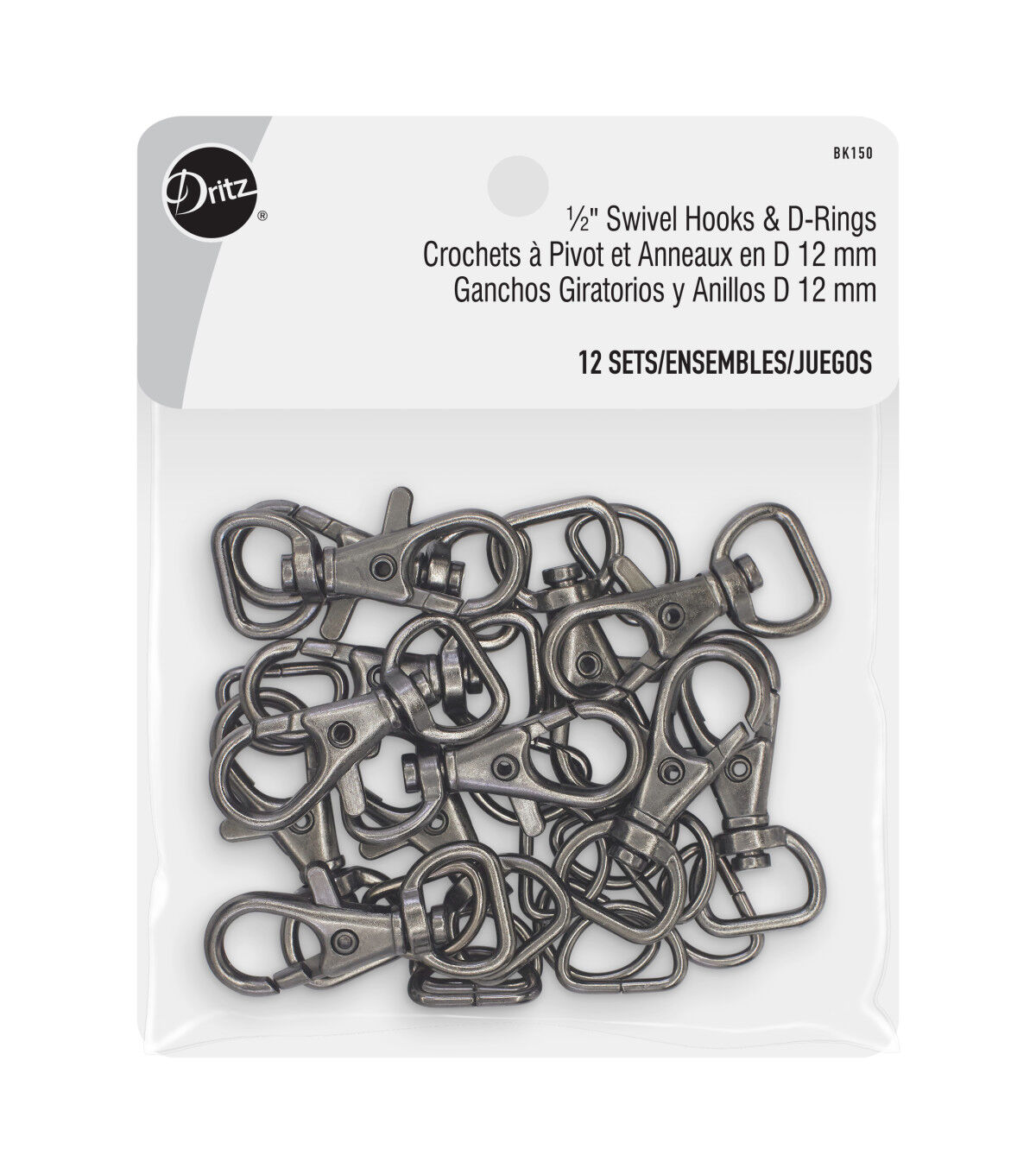 The Dritz Swivel Hook & D-ring Set is a perfectly sized set of hardware designed for use on the straps of wristlets and small clutches. This pack includes 12 sets of hooks and rings. You can attach the D-rings to a small tab of fabric that extends from the side of the wristlet and the swivel hooks to the strap. You can unhook the swivel hooks when the strap is not required or desired.