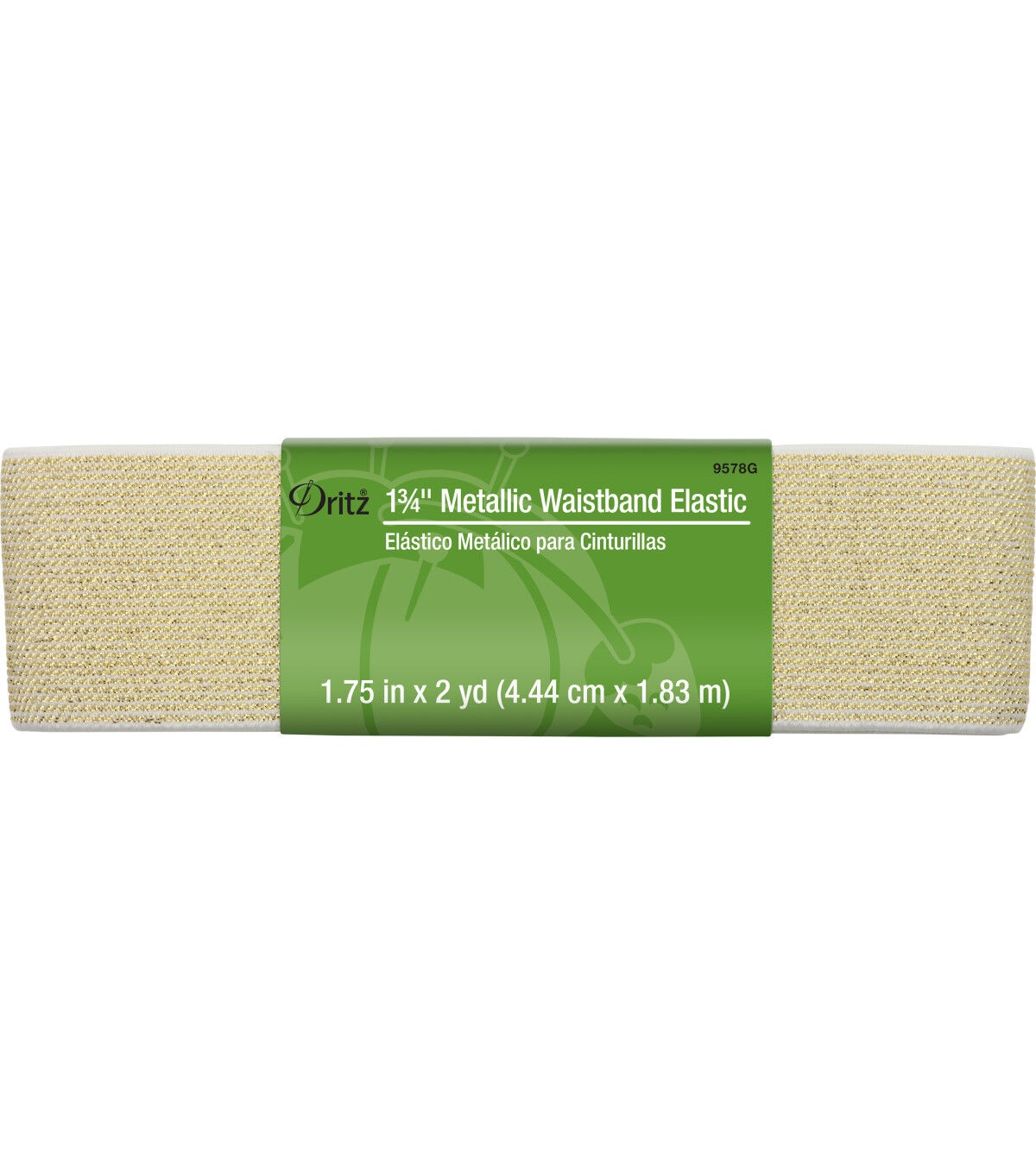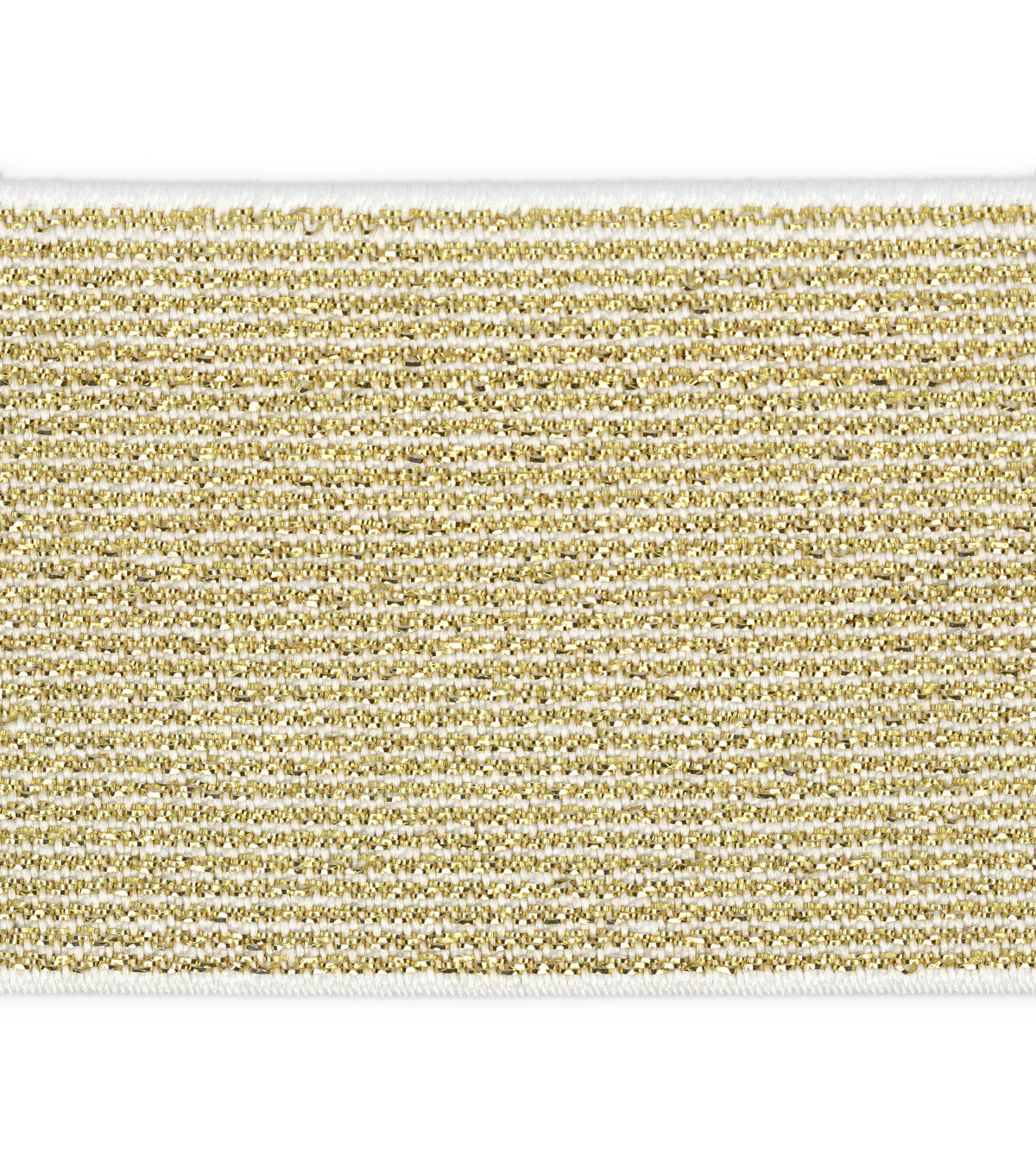 Elastic with gold metallic on one side and soft plush on reverse Perfect wider width for making quick and easy waistbands for garments Adds a little sparkle to your garment