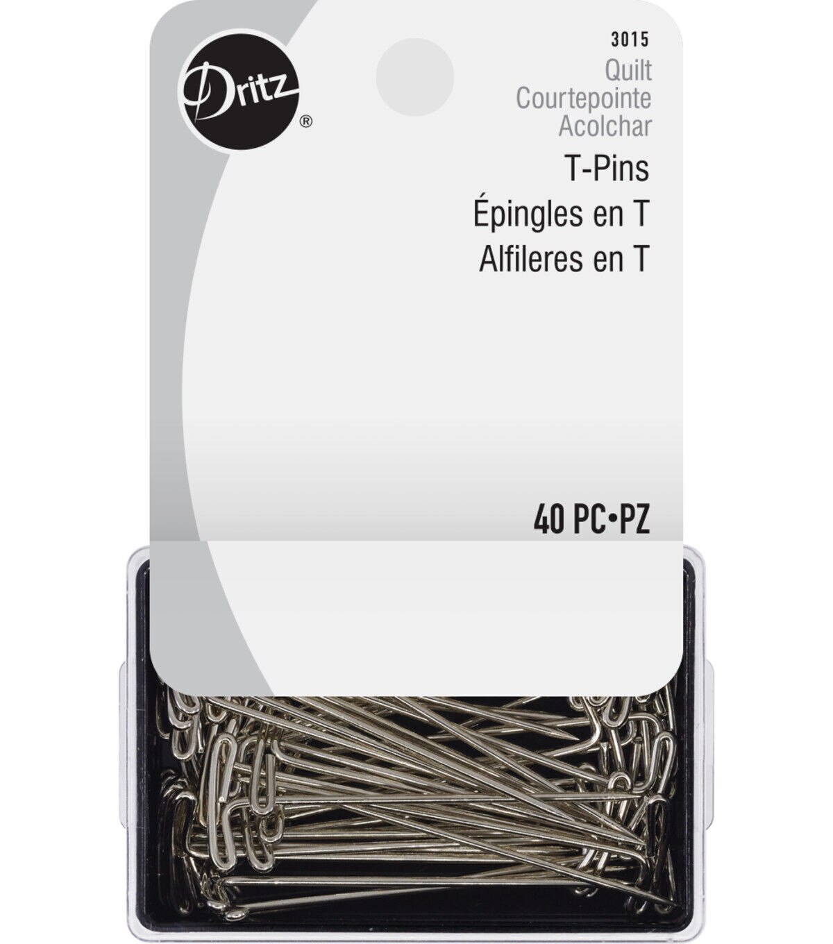 The Dritz Quilter's T-Pins will make a useful addition to your home and craft basket. This pack includes a set of 40 attractive nickel-plated steel pins of size 28 and measuring 1.75 inches. These multipurpose 'T' pins are extremely handy when it comes to holding pieces of cloth together for sewing and quilting. They are also useful in creative projects like jewelry making or creating fabric embellishments.
