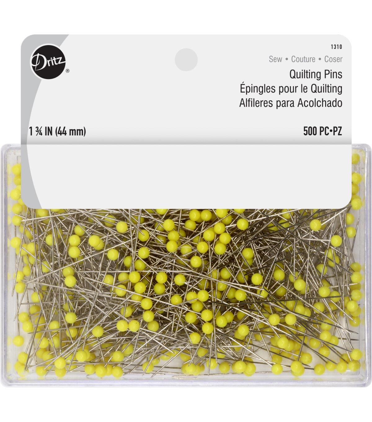 Use the Dritz Quilting Pins - Yellow & Silver for basting quilt layers together. These yellow-head pins are ideal for use with multiple layers of fabric, fabrics with loose weaves, synthetic fur, plush velvets and bulky fabrics. This pack includes five hundred 44-mm nickel-plated pins.