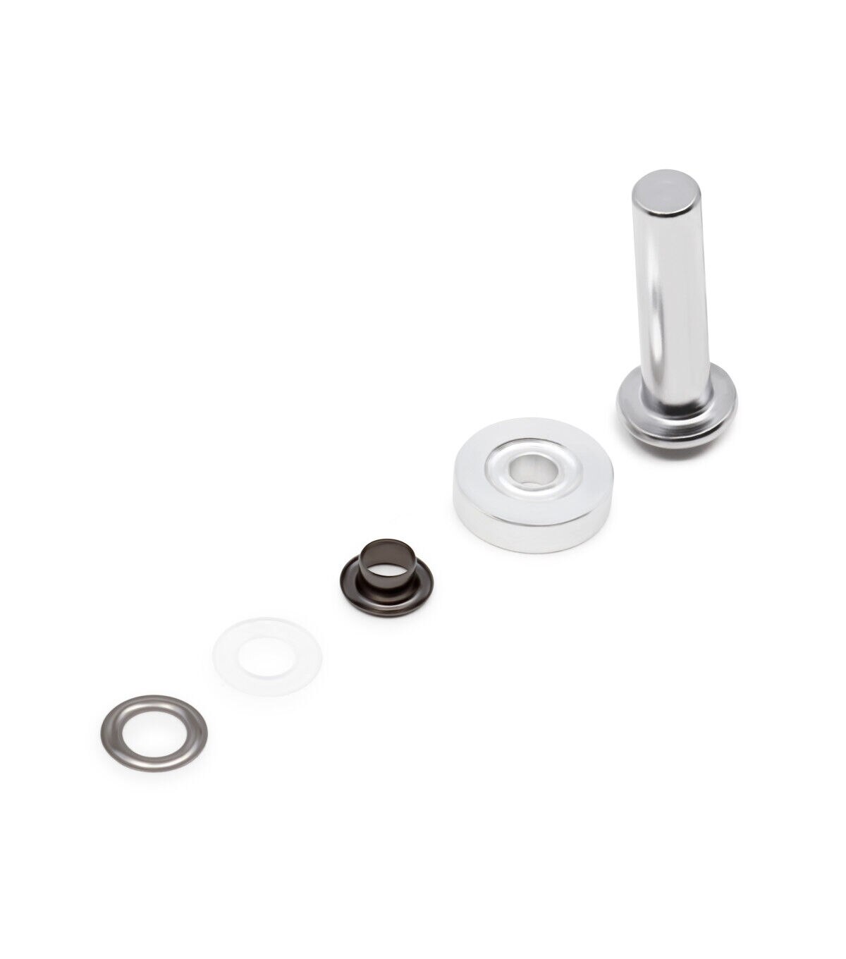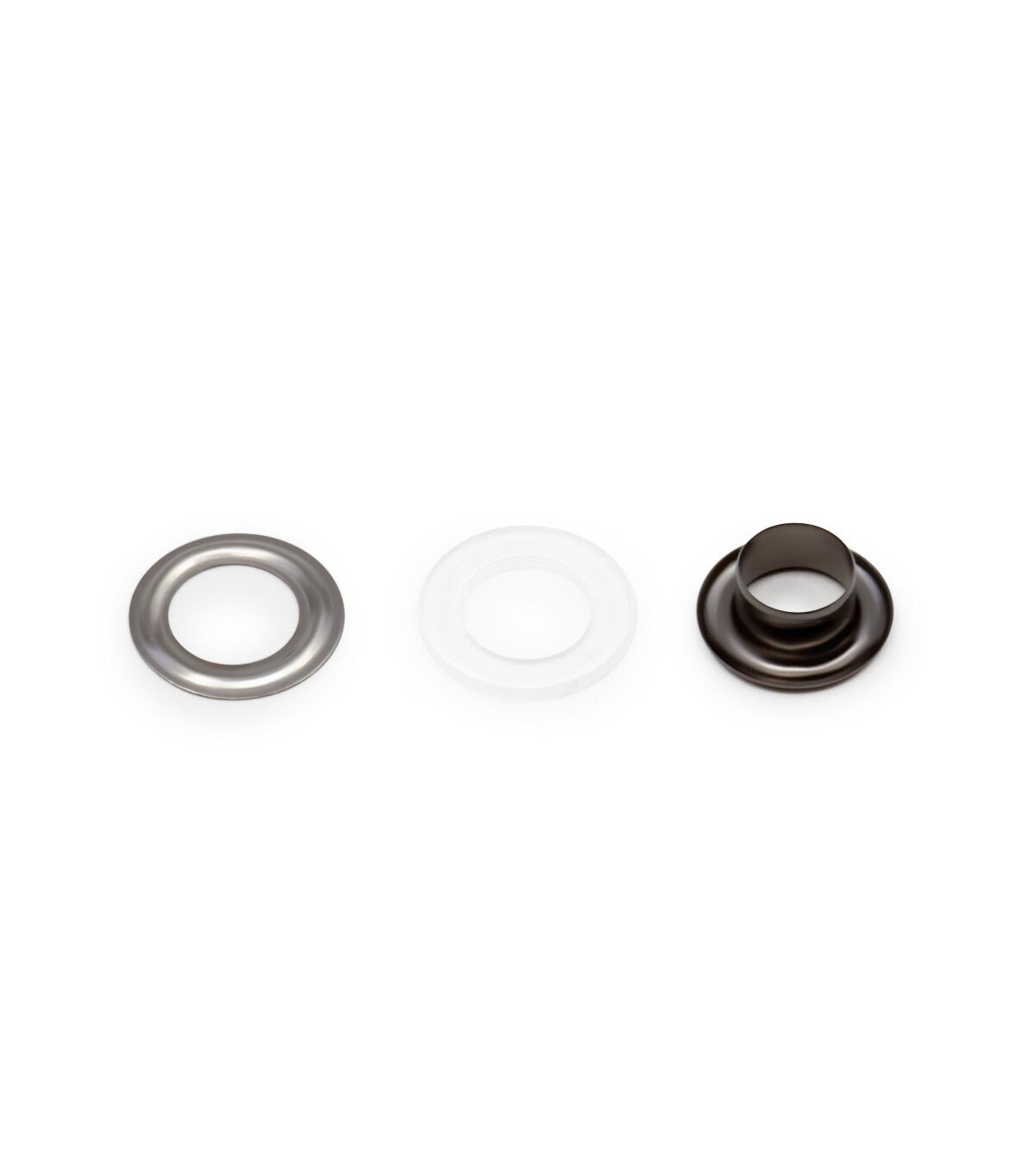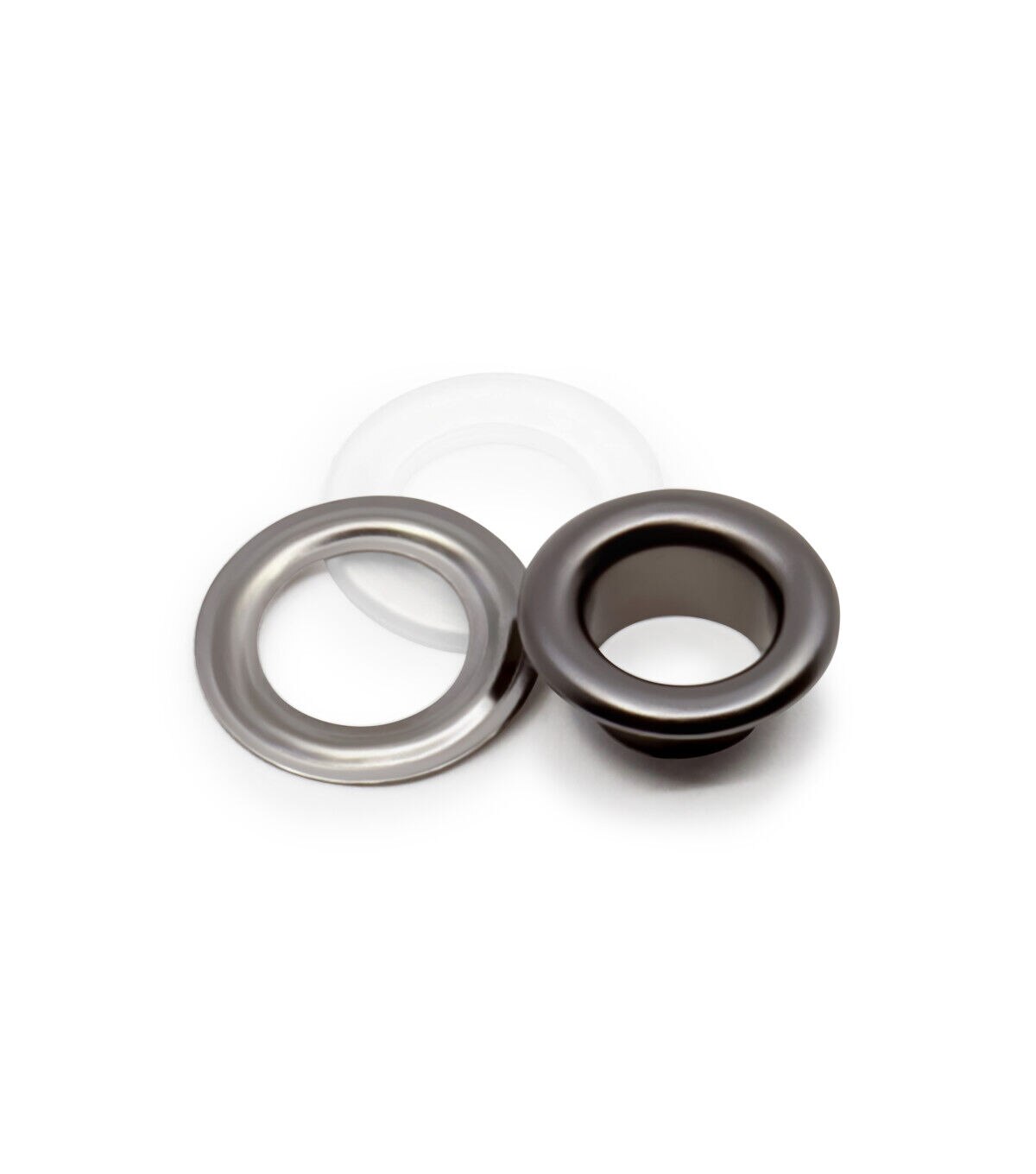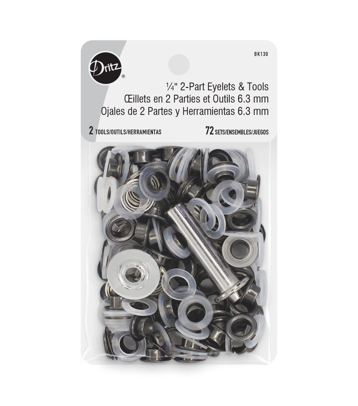 Provide a professional finish and decorative detail to garments, bags, purses and other craft projects using the Dritz 2-part Eyelets & Tools Set - Gunmetal. Perfectly sized, these eyelets can be used for creating laced effects on garments and costumes. They are designed with a plastic insert that is placed on the post of the eyelets on the wrong side of the fabric. The insert provides extra stability and support, making the eyelets suitable to use with only one layer of fabric. Use hand tools and a hammer to place the washer over the insert. This pack contains 72 eyelet sets and hand tools for application.