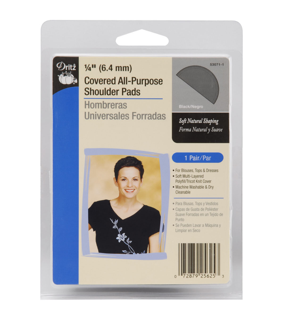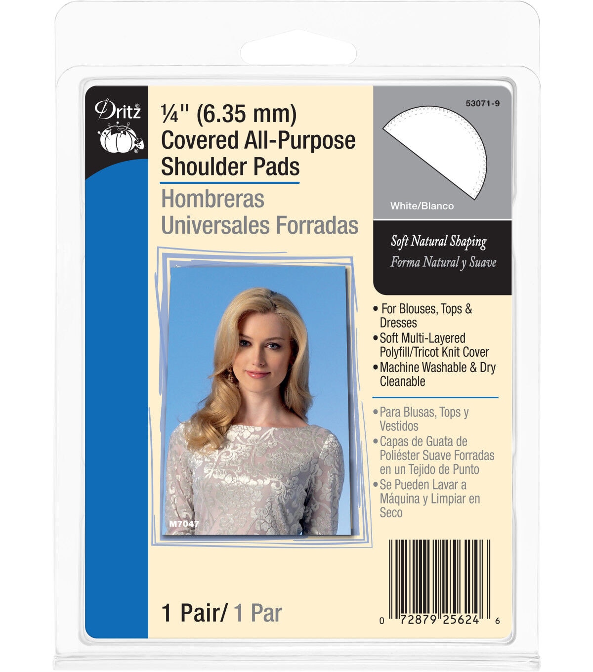 Create well-fitted outfits for yourself, using the Dritz Covered All-Purpose Shoulder Pads 0.25'' Pack of 2. This pack contains one pair of all-purpose covered shoulder pads that feature a tricot knit cover and a multi-layered molded polyfill filling. Machine washable and dry cleanable, these shoulder pads can be used in blouses, top, dresses and other unlined garments. Available in a different color, sold separately.