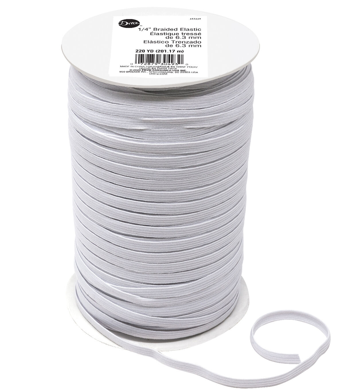 The Dritz Braided Elastic - White will make a great addition to your sewing essentials. This pack includes braided elastic measuring 0.25 inches in width. It is soft, provides a great stretch and will be great for accessories, masks, apparel and decor projects.