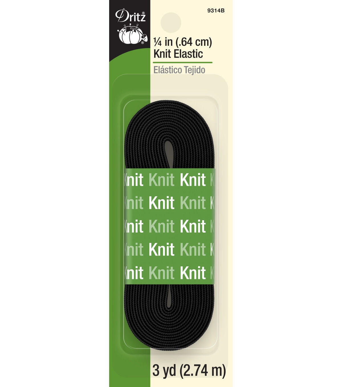 Use the Dritz 0.25'' 3Yds Knit Elastic Black for a number of fabric-based projects. The pack contains three yards of 0.25-inch-wide knit elastic made of rubber and polyester. Lightweight, soft and super strong, this curl-resistant elastic is ideal to make straps and headbands, gloves, waistbands and lots more. This knit elastic does not narrow when stretched and is also unaffected by needle-piercing. Simply insert it into casings or stitch it directly on the reverse side of fabrics. It is machine washable and dry-cleanable. Available in different colors, each sold separately.