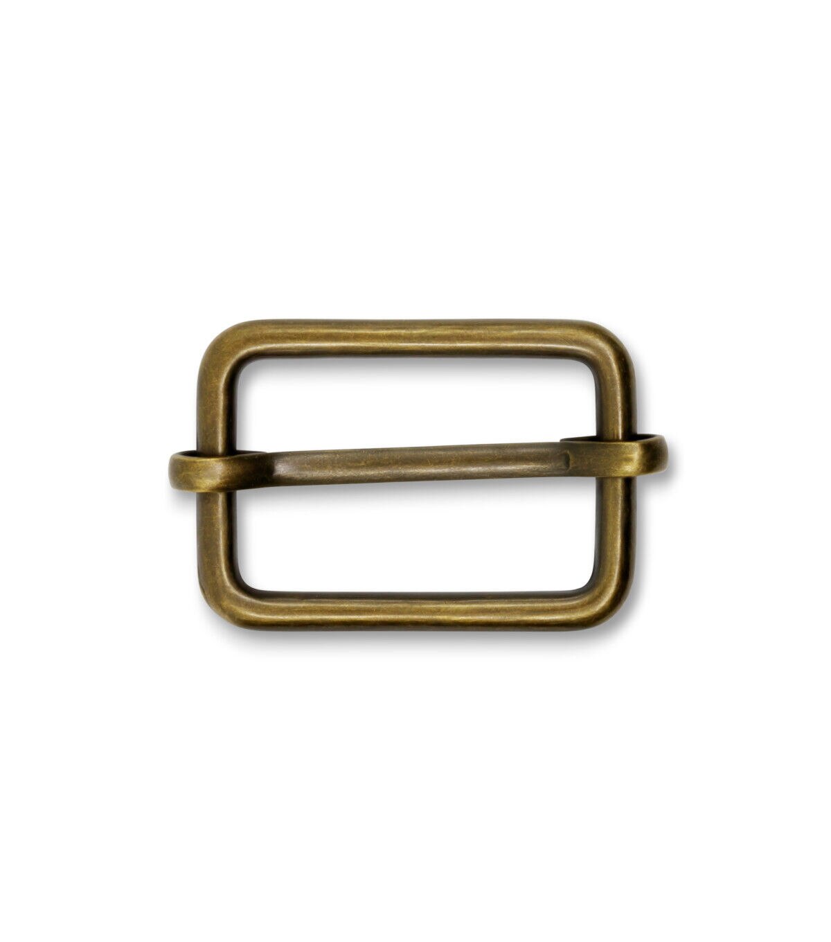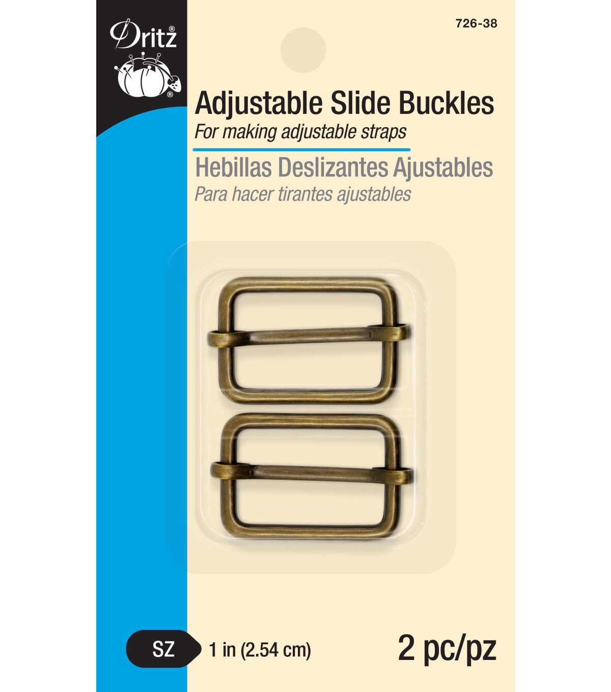 The Dritz Adjustable Slide Buckles - Antique Brass are a must-have for bag and purse construction. These buckles, sporting an antique brass tone, are ideal to adjust straps and convert shoulder bags to cross-body bags. Make straps adjustable to any length using these buckles for a comfortable fit. They are rectangular and come with a moveable center bar that slides to one side and locks the strap fabric into place. You can also use them to create adjustable belts or straps on backpacks and luggage.