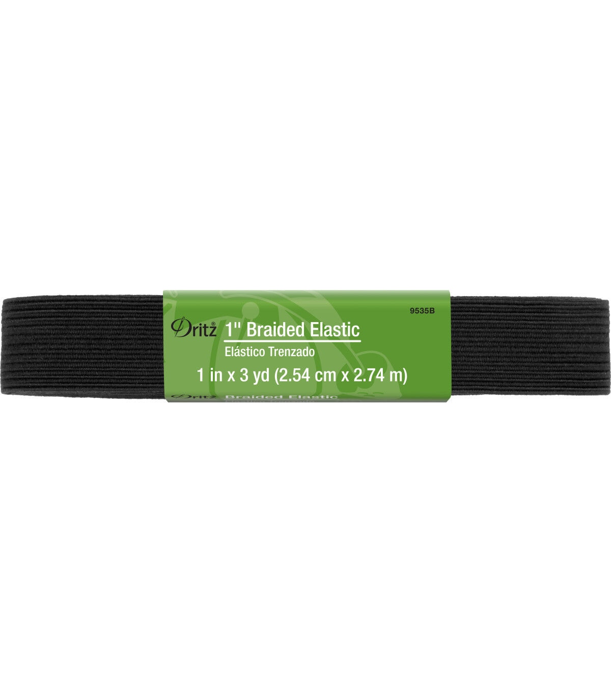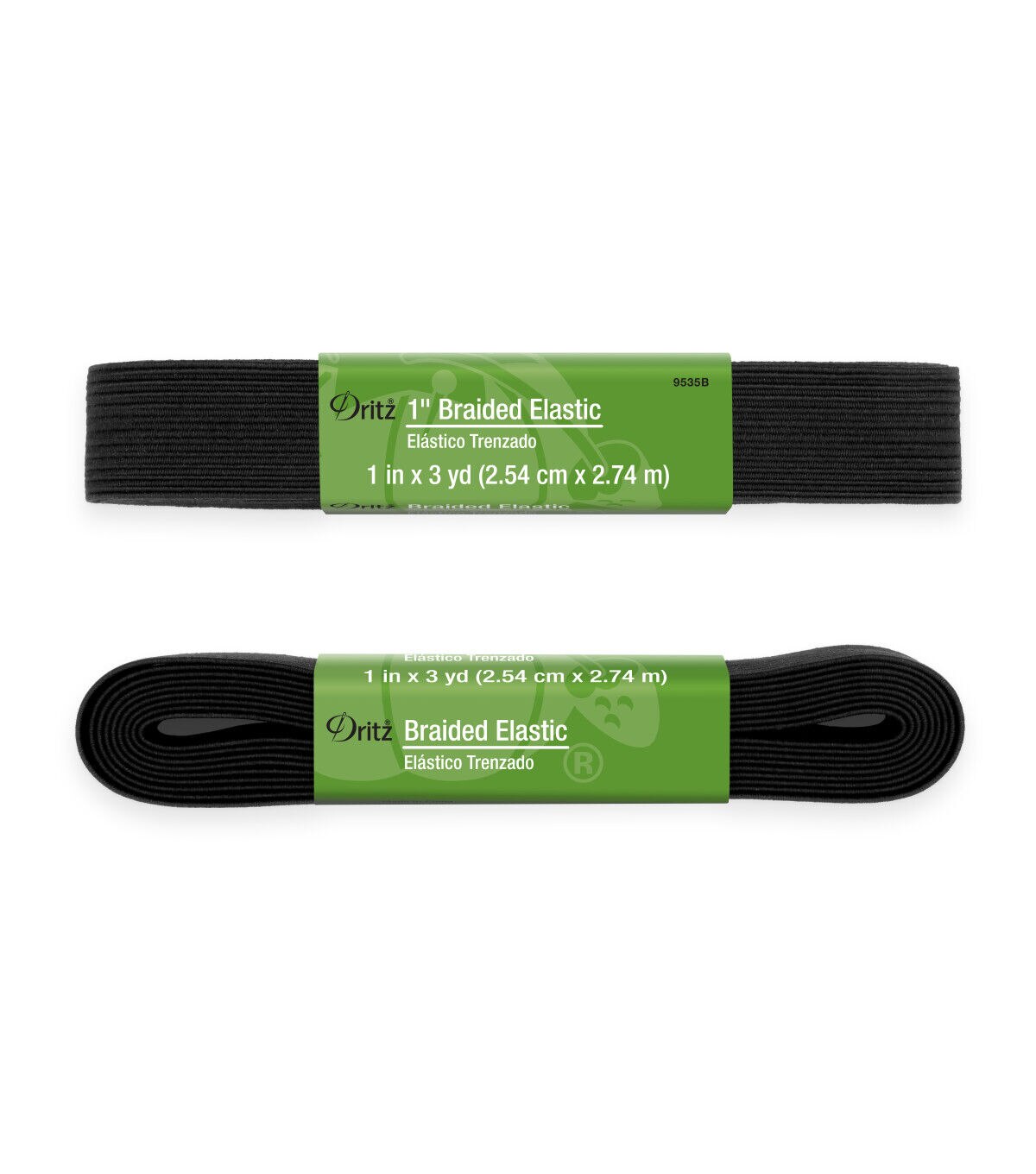 The Dritz 1'' 3Yds Braided Elastic Black comes with distinctive lengthwise horizontal ribs. This pack contains three yards of 1-inch-wide braided elastic which narrows when stretched and is ideal for waistbands and sleeve hems. Simply insert this lightweight elastic into casings or stitch it on the reverse side of fabrics to achieve the desired result. It is machine washable and dryable. Available in different colors, each sold separately.