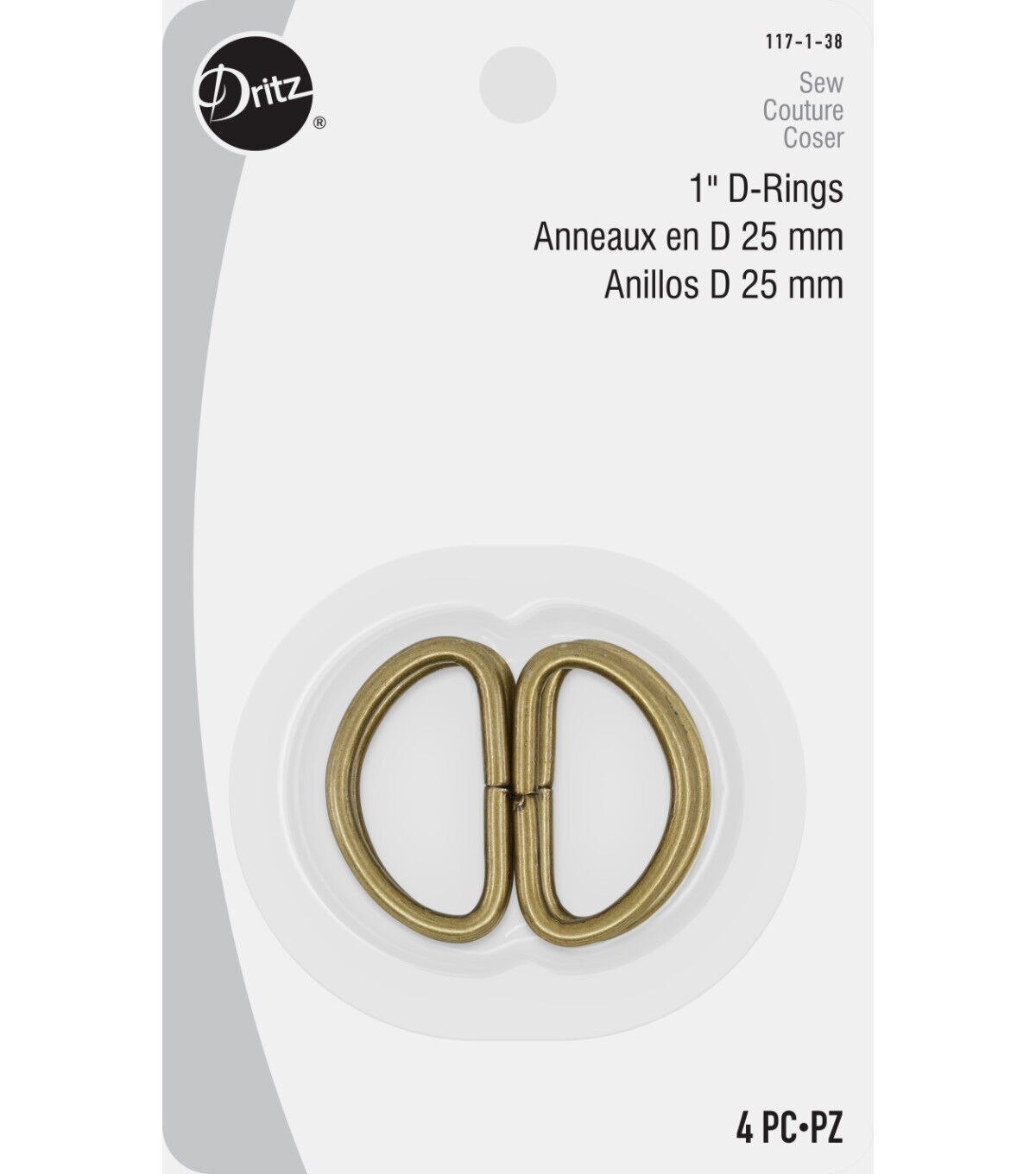 The Dritz Metal D-rings - Antique Brass will be an interesting addition to your sewing supplies. This pack contains four metal D-rings that measure 1 inch and sport an antique brass tone. You can create adjustable ties, belts and straps using two metal D-rings together. They will be perfect for bags and purses.
