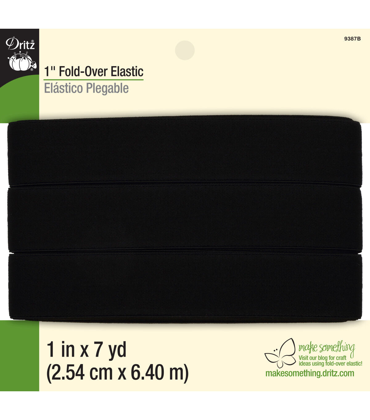 1" Fold-Over Elastic - Black - 7 yards