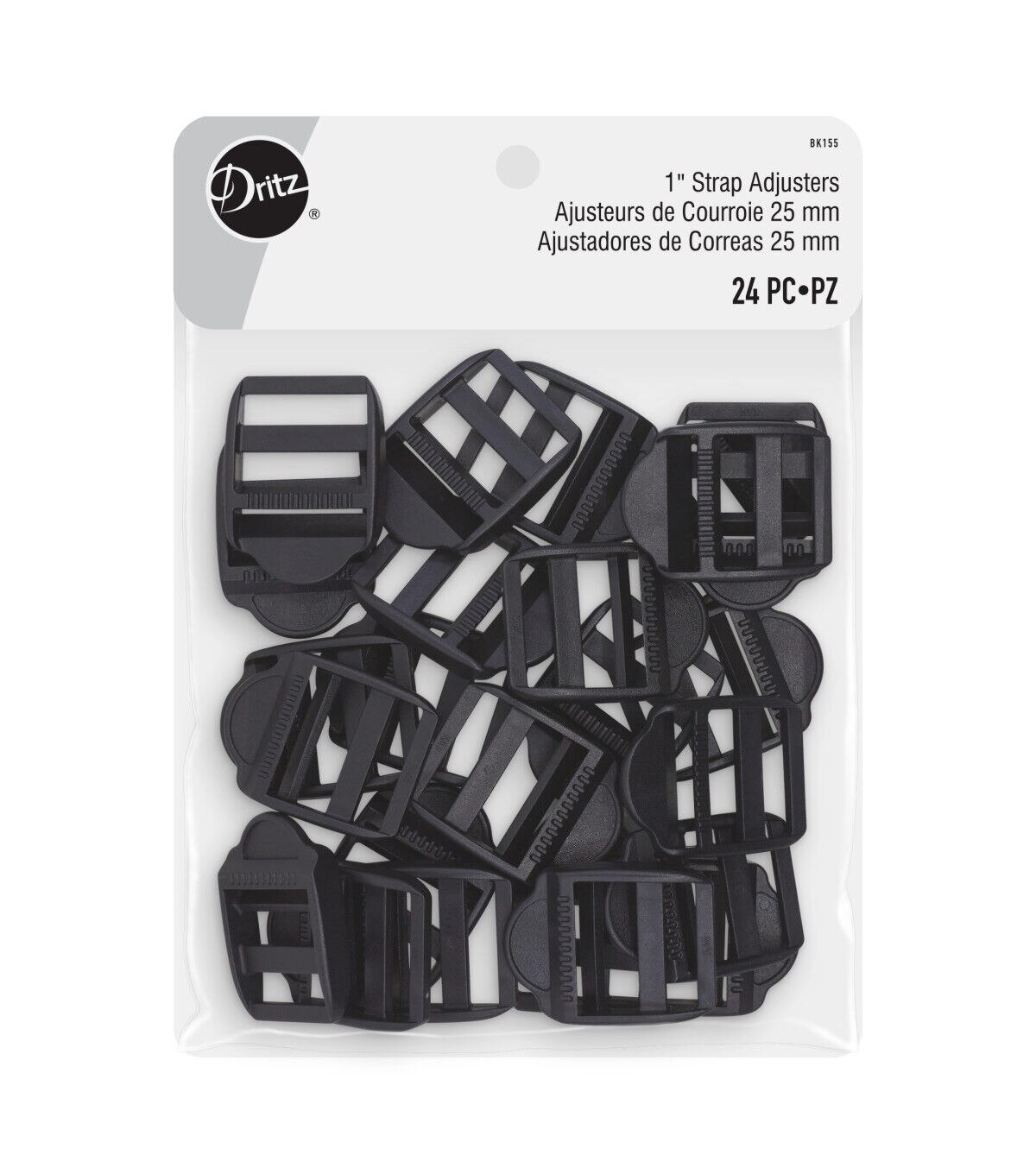 Use the Dritz Strap Adjusters - Black to make handles or straps adjustable in length on suspenders, pet collars, bags and purses. The double loop on these strap adjusters make them suitable to use with fabric, elastic or webbing. You can also use them on luggage, sporting equipment and tote bags. This pack contains 24 black-hued strap adjusters that can be used on 1-inch straps.