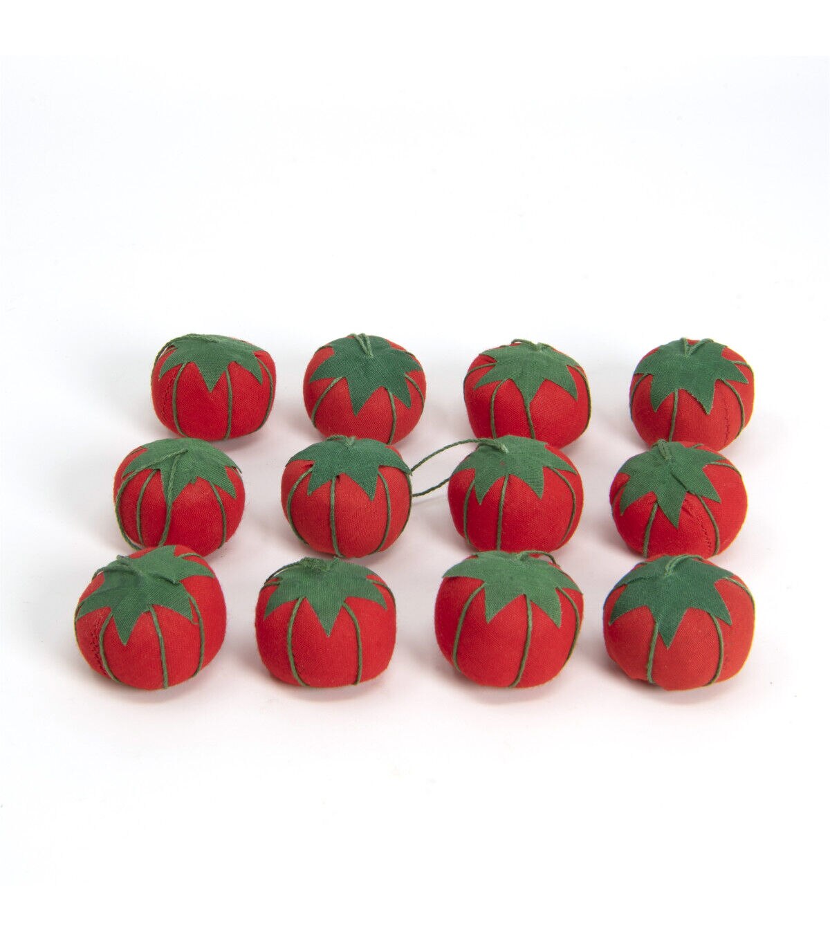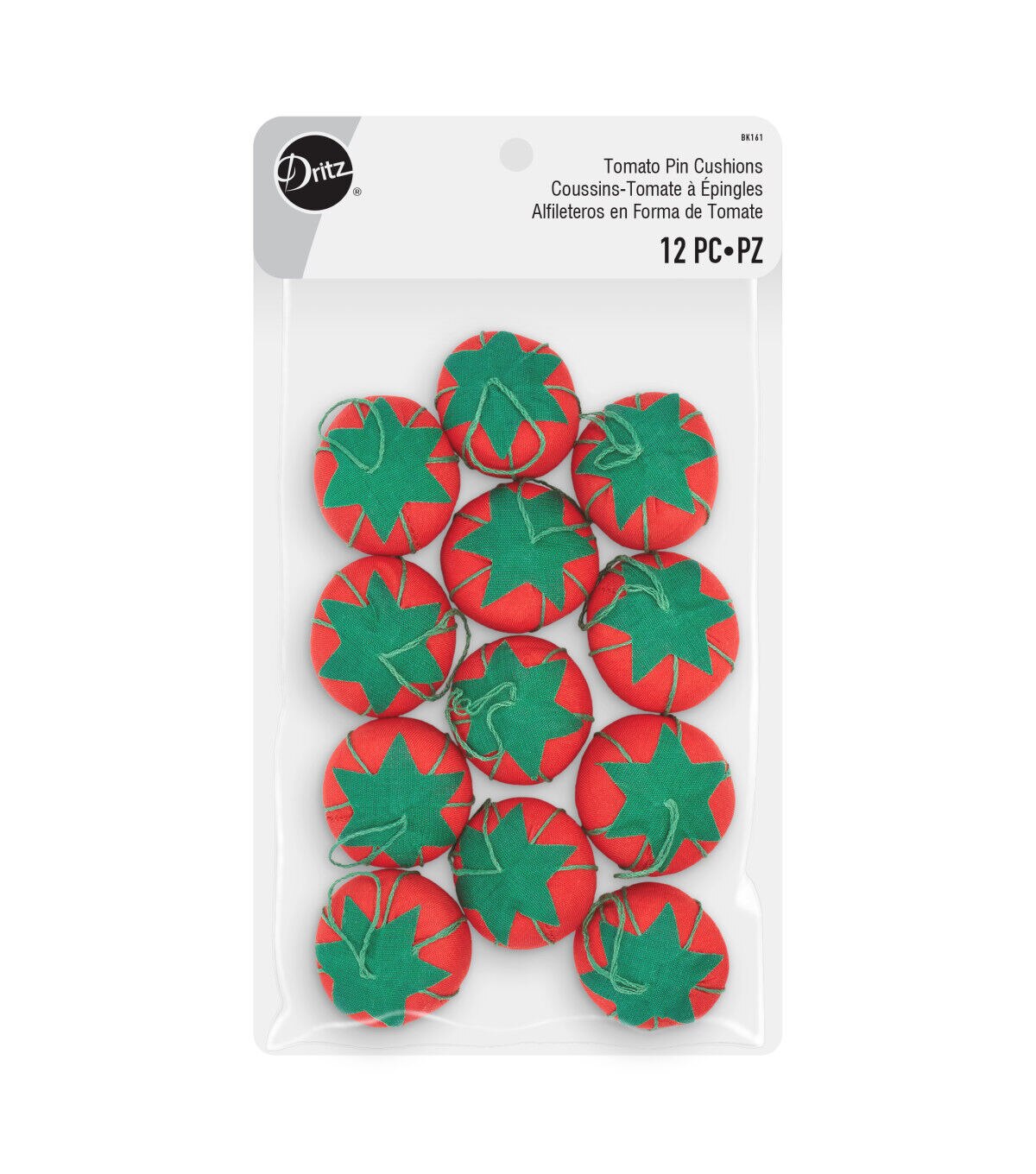 The Dritz Tomato Pincushions - Red & Green will make a great addition to your sewing supplies. These cute cherry-sized pincushions come with a short thread loop at the top. You can use them to safely place to store pins and needles or for craft purposes. This pack contains 12 small pincushions sporting red and green hues that come in a reusable bag. They are also ideal for making sewing kits for students or for sharing with a group of sewing and crafting enthusiasts. Compact in size, they are perfect to add to sewing baskets or to keep in various rooms of your home.