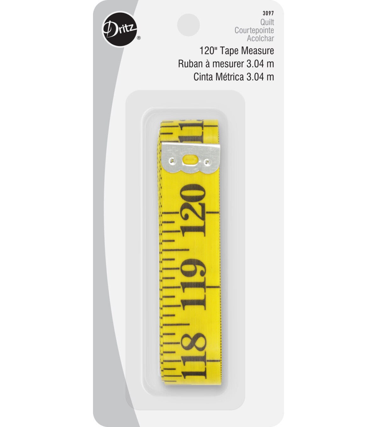 The Dritz Quilting Tape Measure - Yellow is a handy item to have in your sewing kit. This pack includes a yellow-hued quilting tape with a no-stretch and non-shrinking fiberglass construction. It is designed to indicate precise sizes and flaunts clear markings on one side and a useful metric on the other. You can use it for marking the exact locations of buttons, lace, appliques and other fabric embellishments.