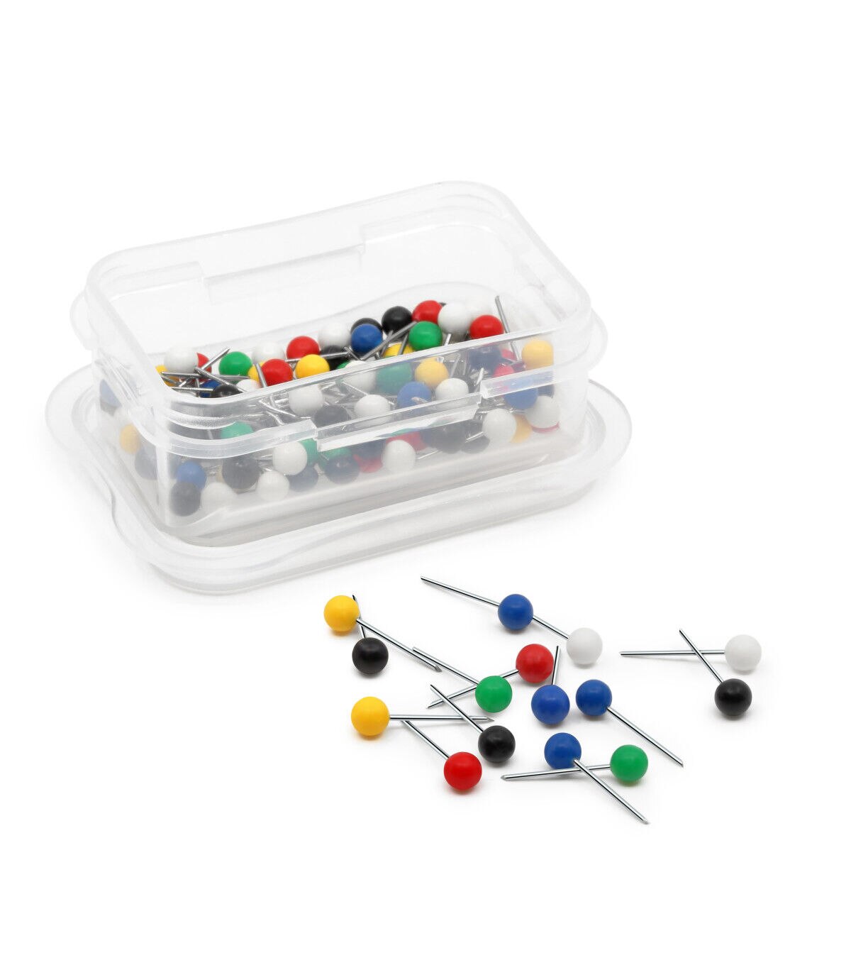 The Dritz Map Pins - Multi is a must-have among your craft essentials. This pack comes with 100 map pins in a plastic storage box. These pins are designed with ball-shaped heads sporting vibrant colors. You can use them to stick them on a map to show all those places you have traveled to.