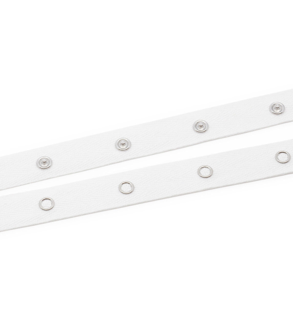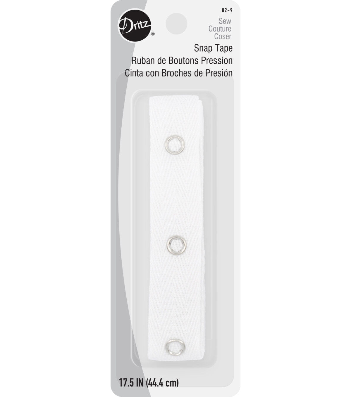 Create adorable baby and toddler outfits using the Dritz Cotton Snap Fastener Tape with 12 Metal Snaps - White. These washable metal snaps are spaced at regular intervals on white cotton tape. They are easy to sew and lay well across fabrics. You can also use these tapes to create pillow covers, slipcovers, totes, trims for jackets and other home decor accessories.
