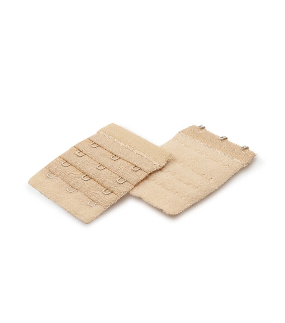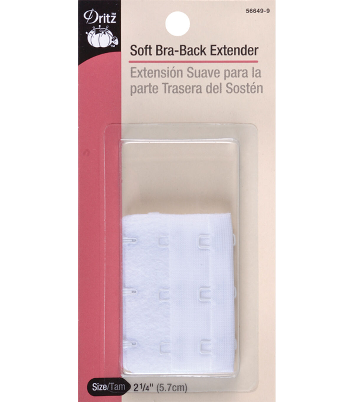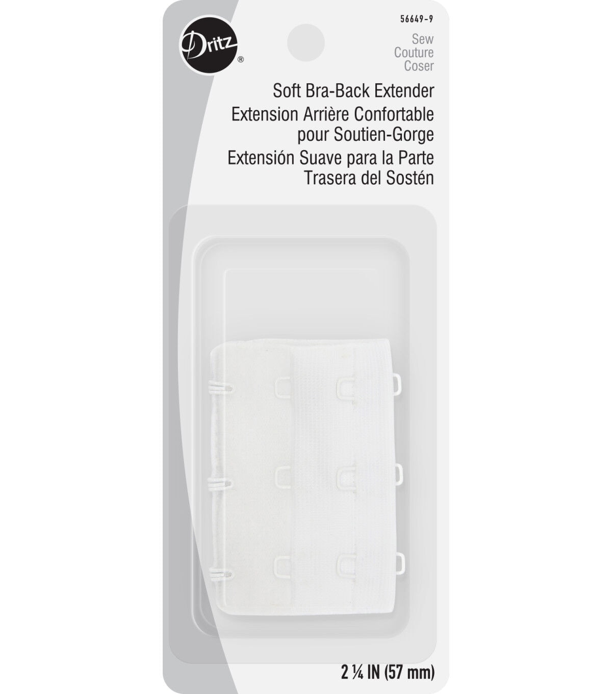 Use the Dritz 3 Hook Soft Bra-Back Extender 2.25'' to add extra inches to the underband of your bra. This pack includes one 2.25-inch wide bra extender with three hooks. Its soft texture not only gives you the extra length you need, but also provides optimum comfort. Simply insert this bra extender between your bra hook and eye for additional length of 1- 3 inches. Available in a variety of colors, each sold separately.