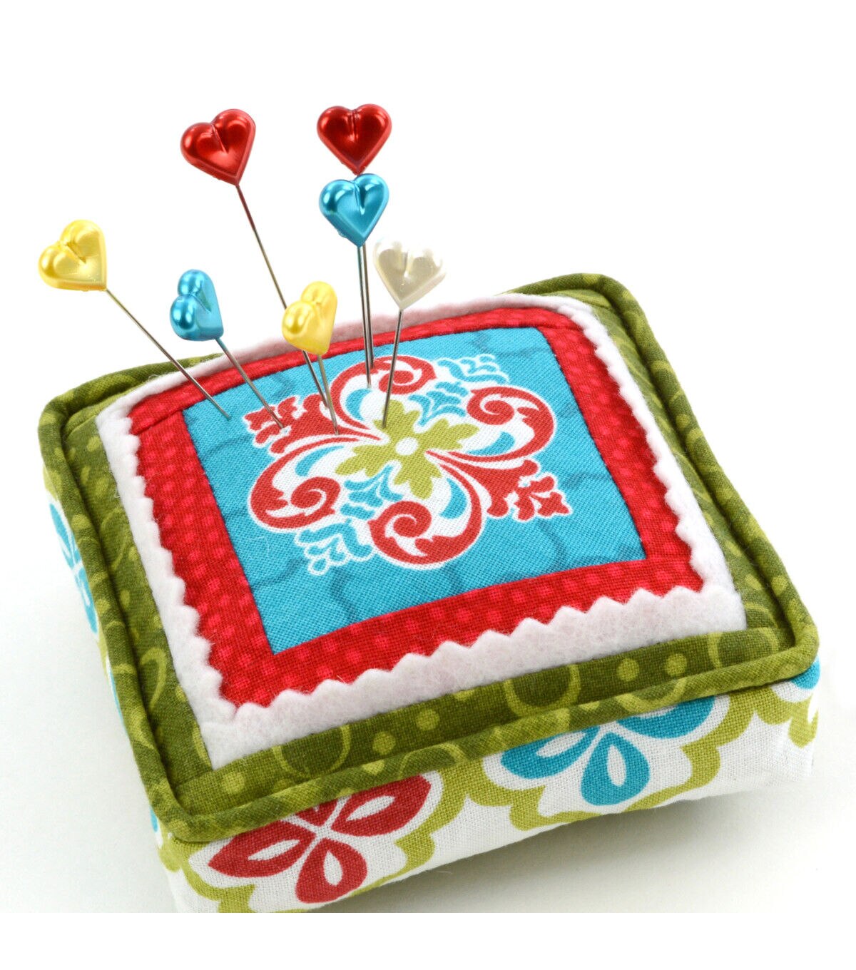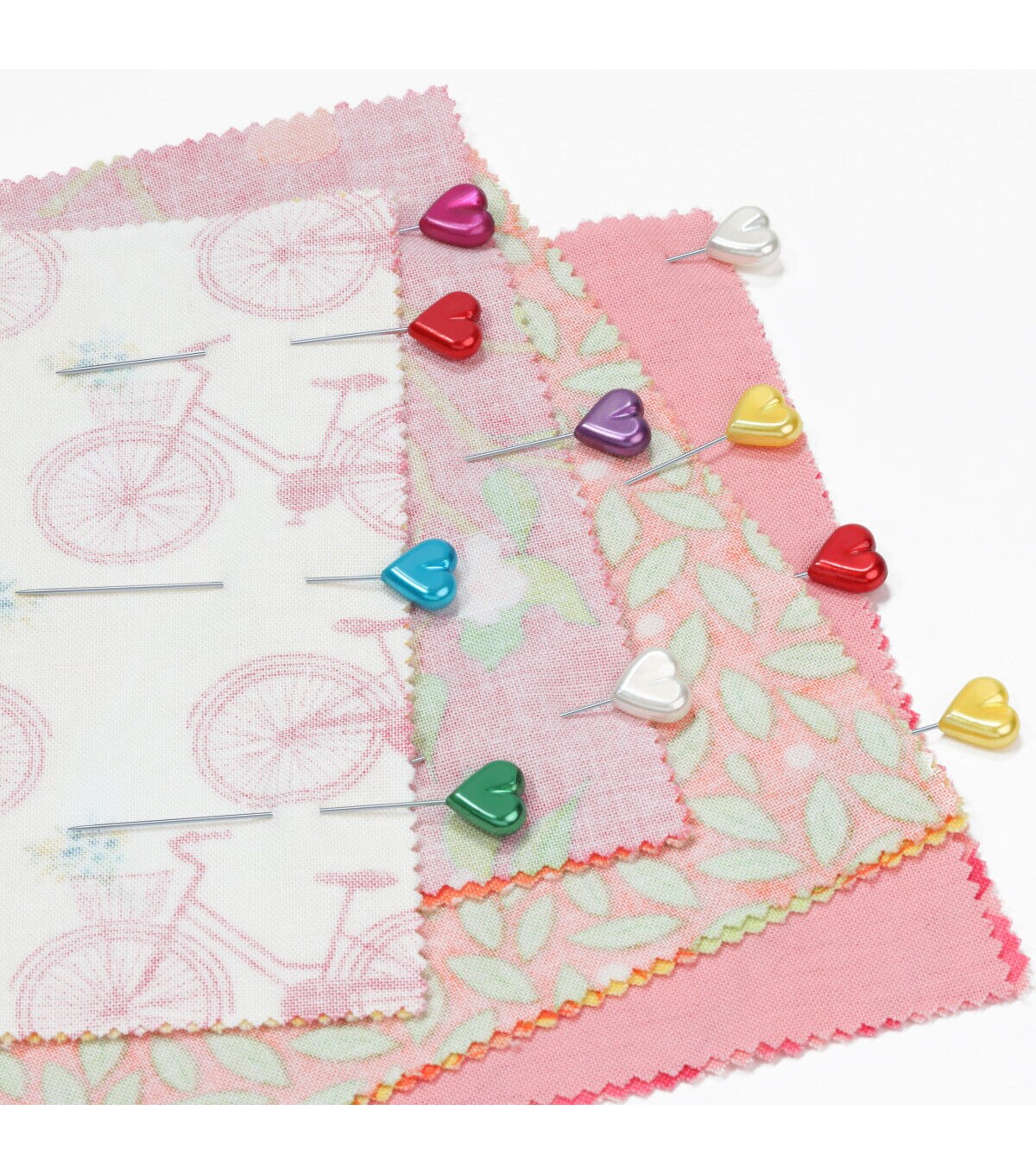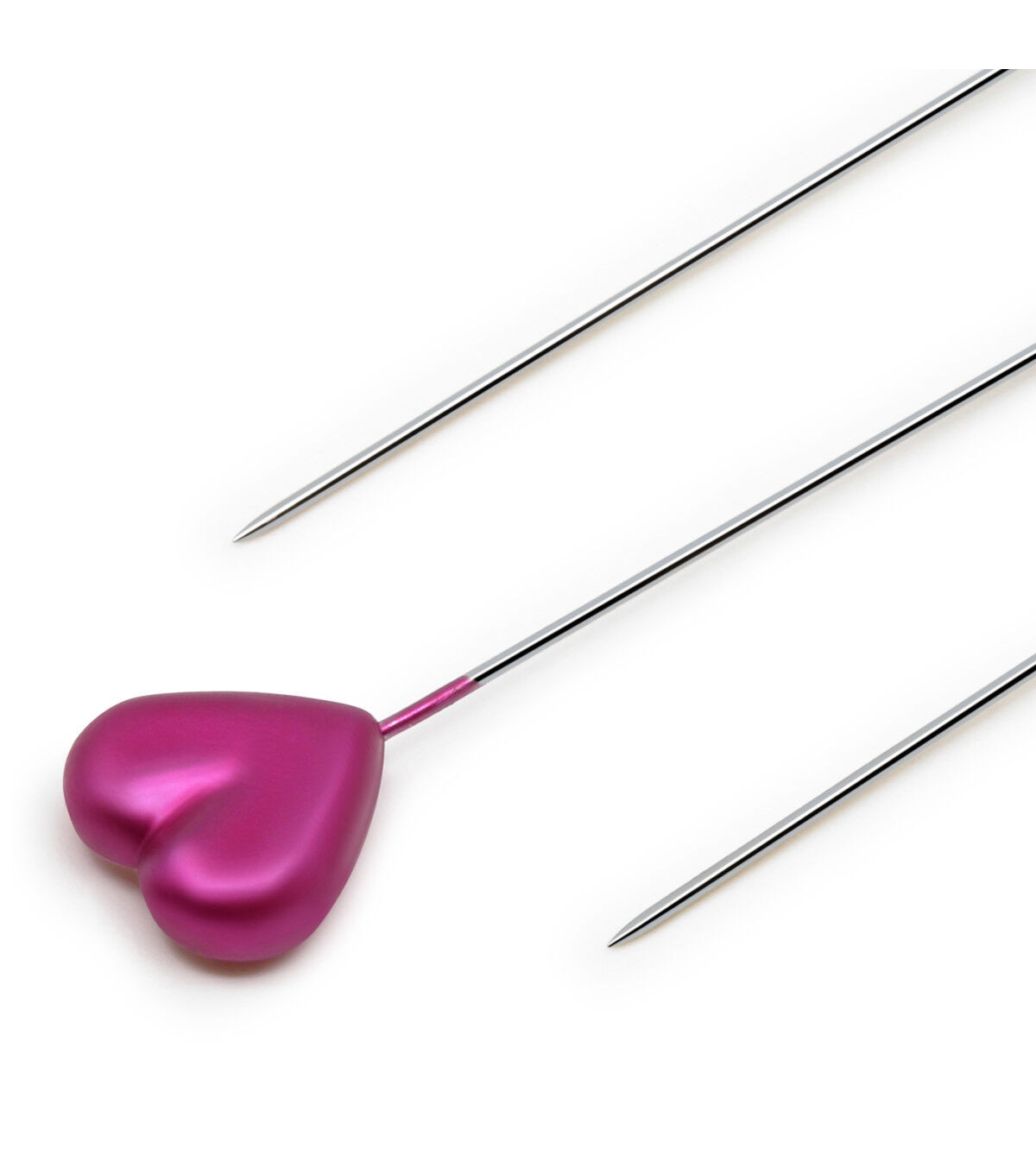 Use the Dritz Heart Pearlized Pins - Assorted for sewing tough fabrics like canvas and blocking knitted items. These pins are designed with heart-shaped heads sporting lovely shades with a pearlized finish. You can also use them for pinning slipcovers onto upholstery. This pack contains thirty-five heart pearlized pins of size 34 in a plastic storage box.