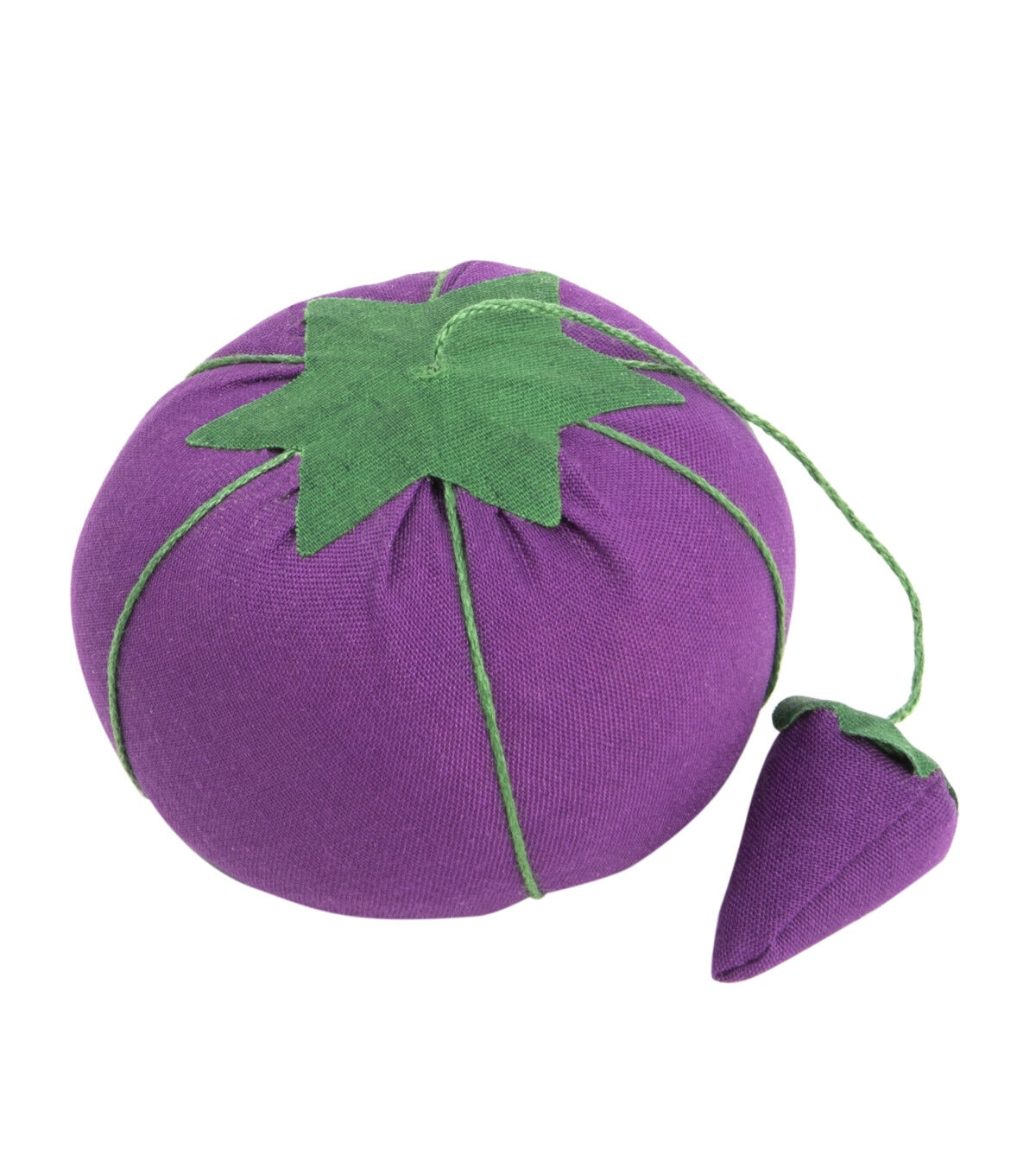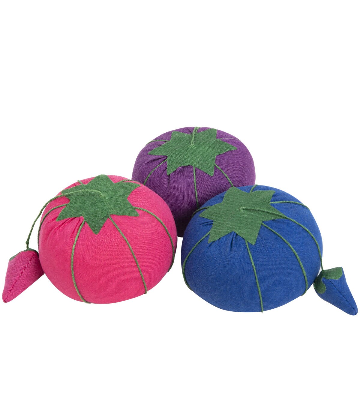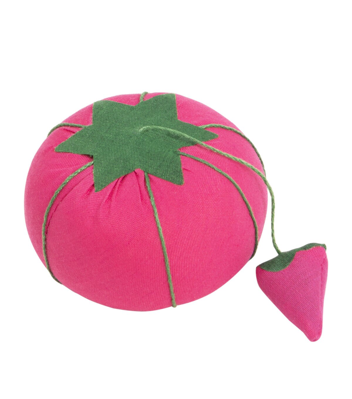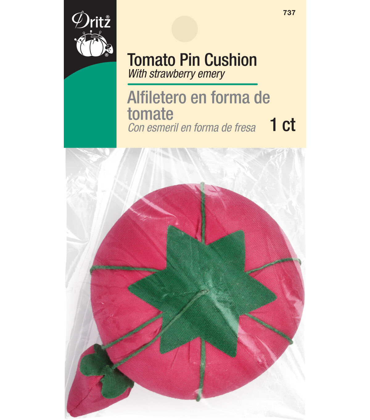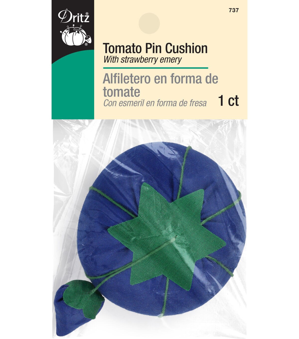 The Dritz Tomato Pincushion with Strawberry Emery - Purple & Green will make a great addition to your sewing kit. This pack includes a 2.75-inch pincushion shaped like a tomato along with a strawberry-shaped emery. Use the pincushion to store pins and needles and keep them handy, and the emery for sharpening and cleaning pins and needles.