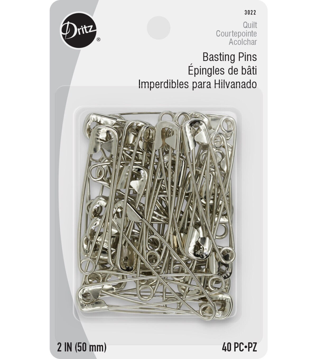 Baste quilts in a jiffy with the Dritz Basting Pins. This pack comes with forty 2-inch nickel-plated steel basting pins in size 3. Designed with a perfect angle, these safety pins can be used to penetrate quilt layers more easily. The quilt basting pins won't slip out and prevent quilt layers from shifting, so you can baste quickly and easily.
