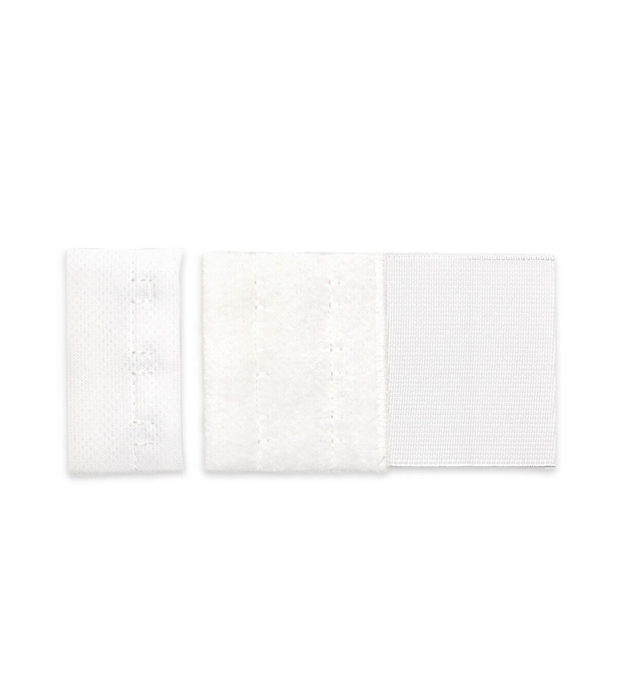The Dritz Soft Bra-back Repair - White is ideal for reinforcing your favorite undergarments. Its soft back provides comfort and eliminates irritation. All you need to do is remove the hook section from the bra, fold the new hook over the end of the bra with the hook on the inside and stitch around the open edges. Next, you need to remove the eye section from the bra, and overlap the end of the bra over the elastic on the eye section of this bra-back repair. Duplicate the original length and stitch using a zigzag stitch. You can trim away excess elastic, if necessary.