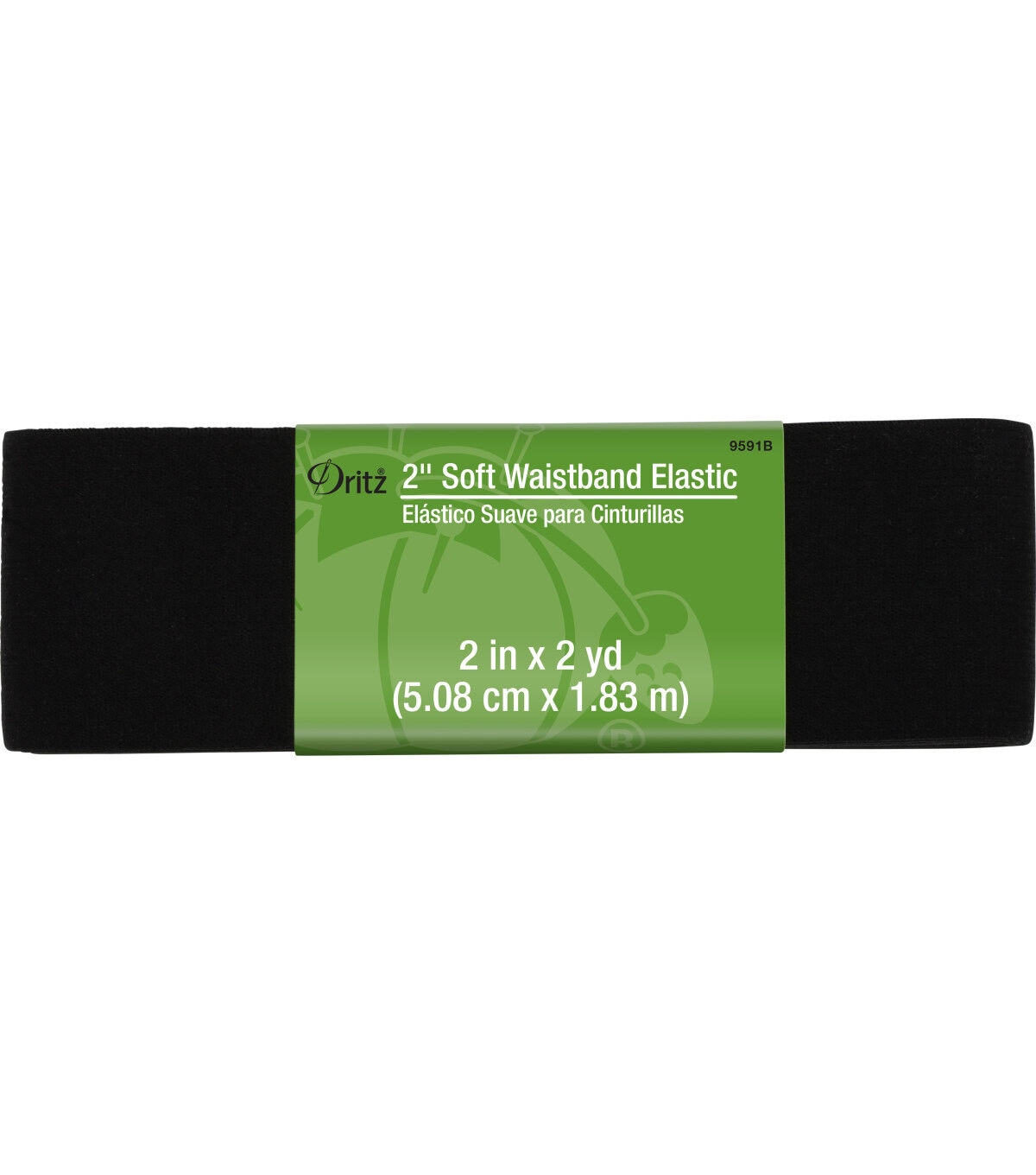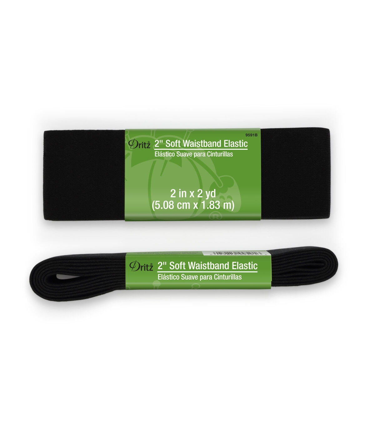 Complete your skirts, shorts, pants and other garment sewing projects with the Dritz Soft Waistband Elastic - Black. This 2-inch-wide waistband elastic sports a black shade and creates a soft comfortable waistband that resists rolling and lies smoothly around your waist. You can use this machine-washable and dryable waistband elastic with contrasting or printed fabrics for best results.